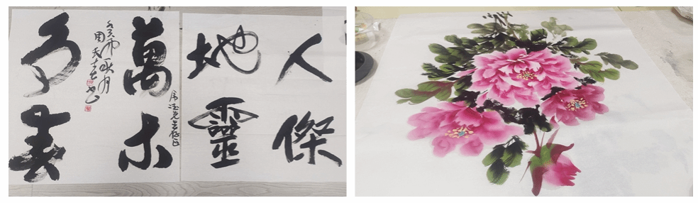 文艺节目放异彩。渭北社区“共建邻里迎中秋·举国欢腾庆国庆”庆双节系列活动,武术表演、葫芦丝演奏、巧手做国旗、共绘国画牡丹图等轮番上阵,处处烘托节日气氛 ,一起共奏团圆喜乐。