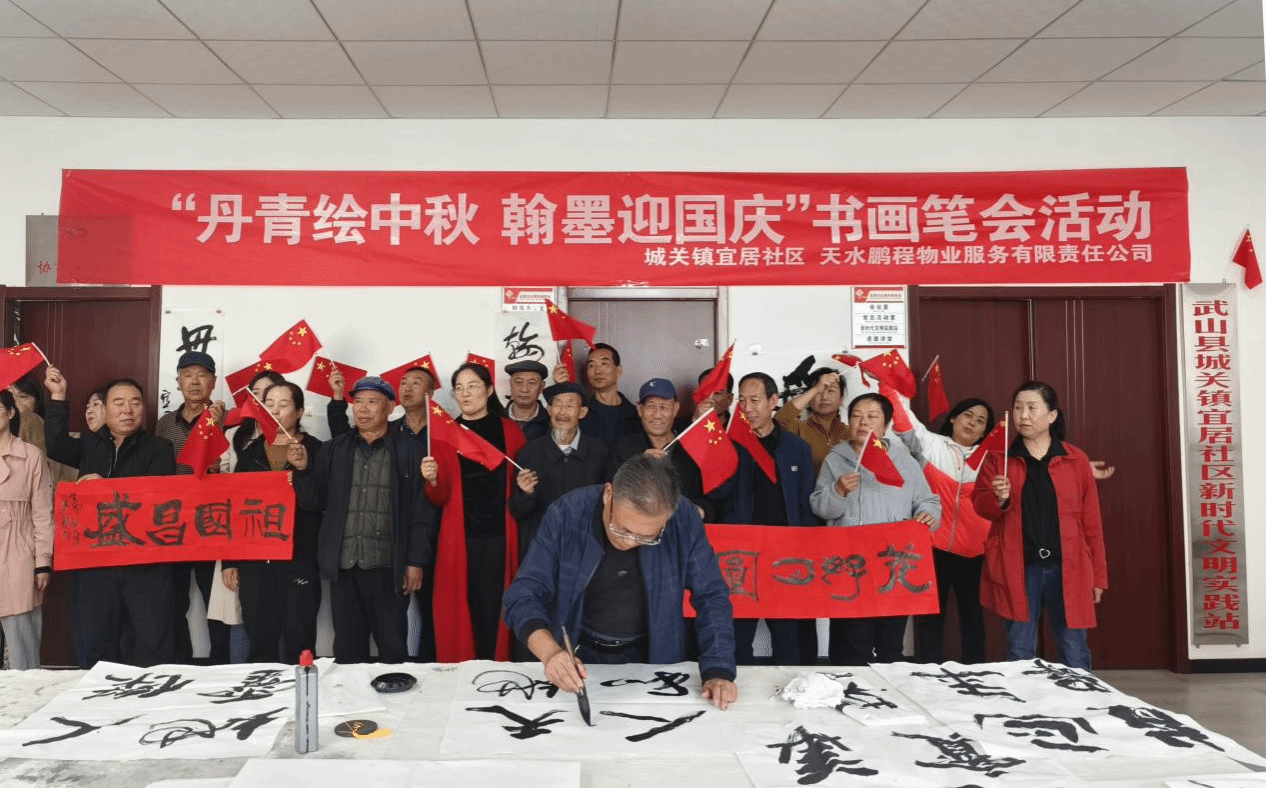 书香气息促联谊。宜居社区“丹青绘中秋·翰墨迎国庆”书法笔会,书画爱好者们欢聚一堂,以笔为媒、以墨传情,共同描摹着中秋、国庆的美好愿景,绘出社区文化生活和美画卷。现场设置了展示区域,大家近距离观赏创作,相互交流、学习,表达对祖国的情意和对传统文化的热爱。