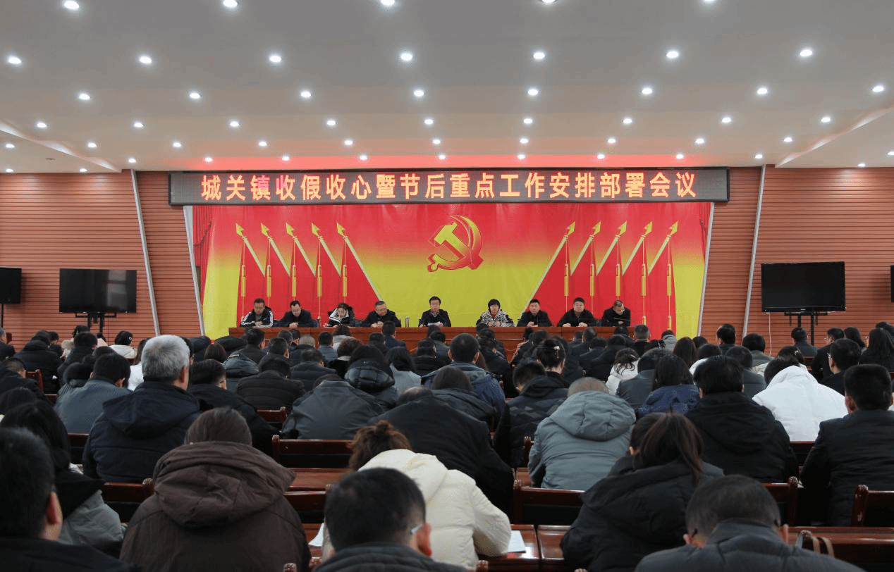 岁序易,华章新。2月19日,城关镇召开收假收心暨节后重点工作安排部署会,镇全体干部,第一书记,各村文书等190余人参加会议。