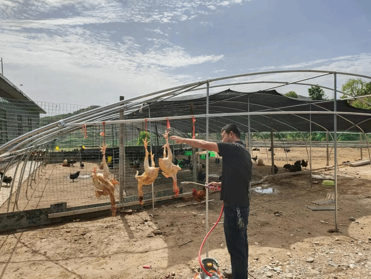 “我们养殖鸡场由村集体经营,肉公鸡毛色亮、肉质优;五黑鸡所产绿壳蛋分量重、营养价值高。采用‘现场+订单’零售相结合,从挑选屠宰、脱毛清洁到包装配送,我们一条龙服务。近期‘畅销鸡’生意火爆,大家信心满满!”雷山村驻村干部周建元介绍道。