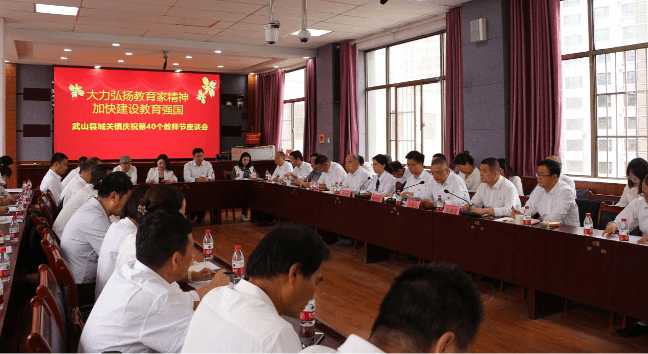 金秋送爽佳节至,杏坛正逢又一春。为进一步营造尊师重教浓厚氛围,激励广大教职工增强工作责任感和使命感,推动全镇教育事业高质量发展,9月9日,在第40个教师节即将到来之际,城关镇组织召开庆祝第40个教师节座谈会。部分镇领导班子成员、各高级中学党组织书记(校长)、城关学区负责人、各中小学校长、教师代表等共计70余人参加会议。