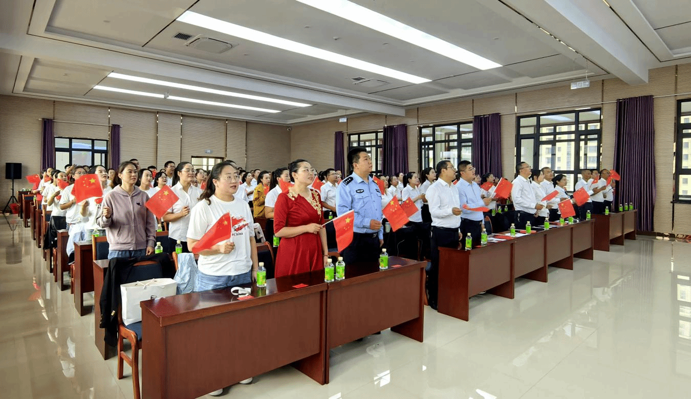 最后,全场观众挥舞着五星红旗,共同唱响《歌唱祖国》,将文艺展演推向了高潮。全场人员挥舞着手中的国旗,齐声吟唱,用最炙热的感情唱出心声,将颂歌献给祖国,祝福祖国繁荣昌盛!