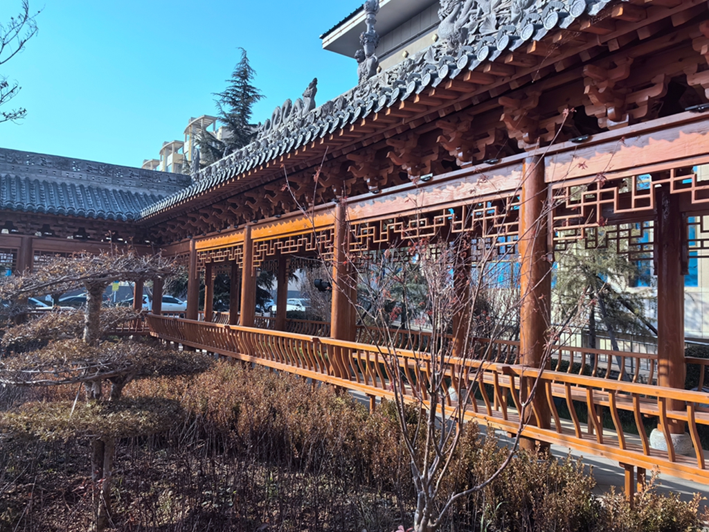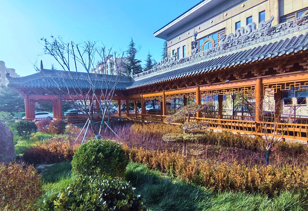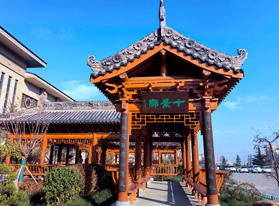 聆渭亭融合了传统与现代元素。木质结构搭配青瓦白墙,古朴典雅又不失简约大气。围绕“武山十有”“武山十景”渭川文化品牌,从研讨创作撰写到刻成落匾,每一副匾联都像是一把钥匙,打开通往渭川文化底蕴的大门。匾额上书的“十有武山”四个大字,苍劲有力,气势恢宏,如龙飞凤舞,透着一股豪迈之气。下台阶进入廊道,抬头又见“山雄”之匾,那雄浑的字迹仿佛在诉说着武山山脉的巍峨与壮阔,让人不禁想起那直插云霄的山峰,顶天立地。至尽头右拐,朝北的廊道上书“水秀”,让人不禁联想到武山的潺潺溪流和清澈湖泊,那波光粼粼的水面,如诗如画。继续前行,依次有“洞天”“泉汤”“菜香”“鱼鲜”“文脉”五块匾额,层层递进,每一块都蕴含着武山独特的魅力,把自然之美与人文之情完美融合,成为渭川文化的崭新名片。