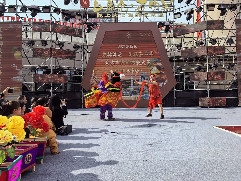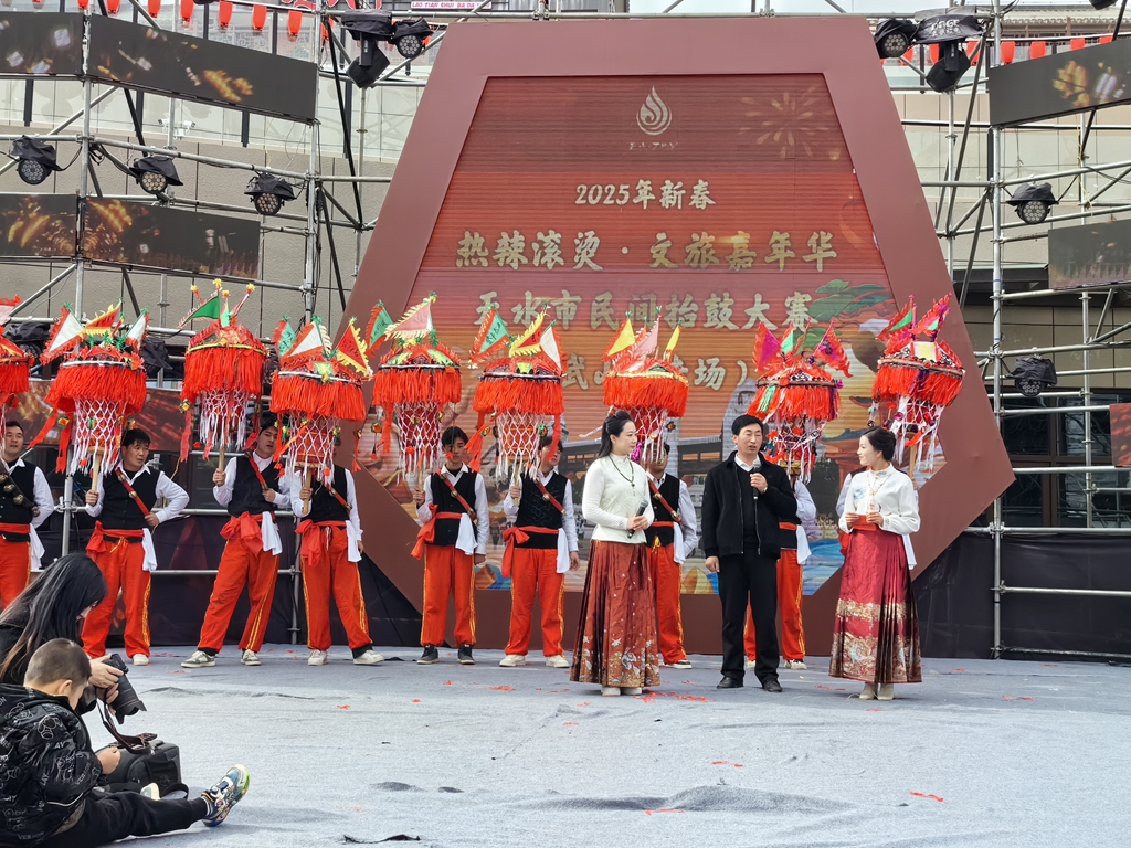 新武山讯(记者 杨洋2月5日,2025 年新春“热辣滚烫·天水文旅嘉年华——天水年·更中国,天水市民间抬鼓大赛”武山专场在天水白鹿仓·万物昇陇上文化旅游度假区精彩上演,来自武山的6支抬鼓代表队表演了舞龙舞狮、荡旱船、扭秧歌等非遗节目,赢得群众阵阵喝彩声,让年味更浓。