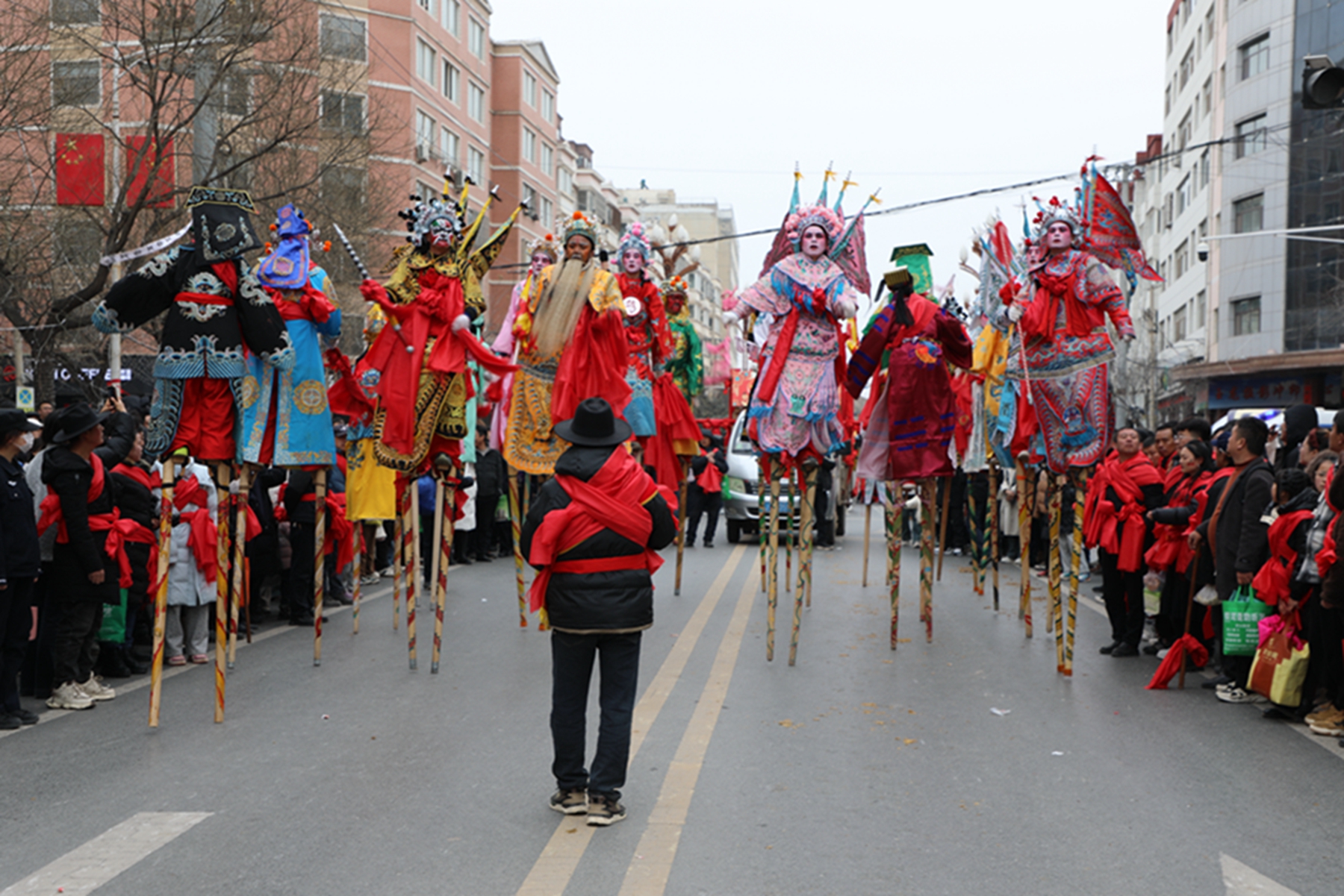新春佳节,阳光暖煦,来自全县各乡镇的秧歌社火表演队伍载歌载舞,浩浩荡荡地涌入县城的主街道。瞧,彩绸如灵动的霞光,在舞者手中肆意翻飞,与那明艳的服饰相互映衬,勾勒出一幅生机勃勃的民俗画卷 。大街小巷被欢快的鼓点和绚丽的色彩点燃,汇演现场,各秧歌队伍身着绚丽服装,依次登场。彩绸飞舞,扇影绰约,演员们步伐轻盈,欢快的节奏点燃了现场气氛。舞龙舞狮、武山捣蒜罐、滩歌镇马排子、踩高跷等环节更是将活动推向高潮,巨龙翻腾,瑞狮欢腾,引得围观群众阵阵叫好,掌声、欢呼声此起彼伏。现场锣鼓喧天,那富有节奏的鼓点仿佛是新春的心跳,一下下撞击着人们的心房,唤醒了沉睡一冬的热情,让整个县城都沉浸在浓浓的节日氛围之中 。