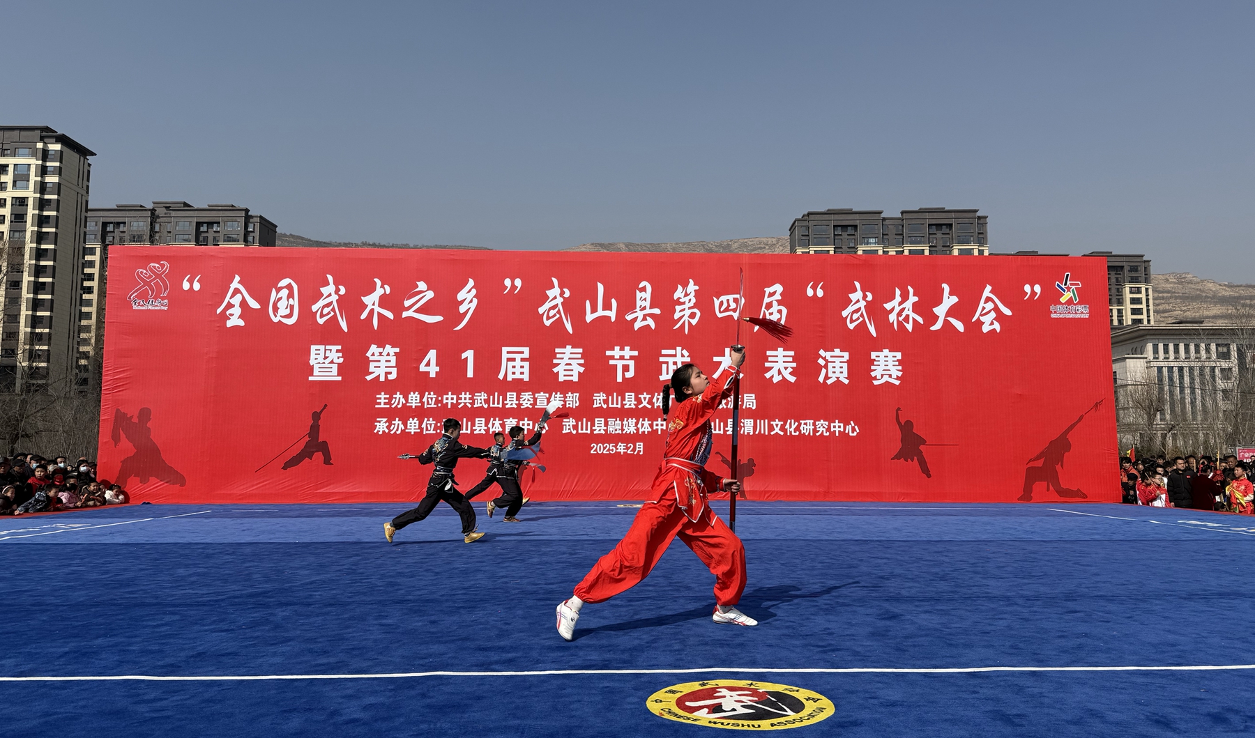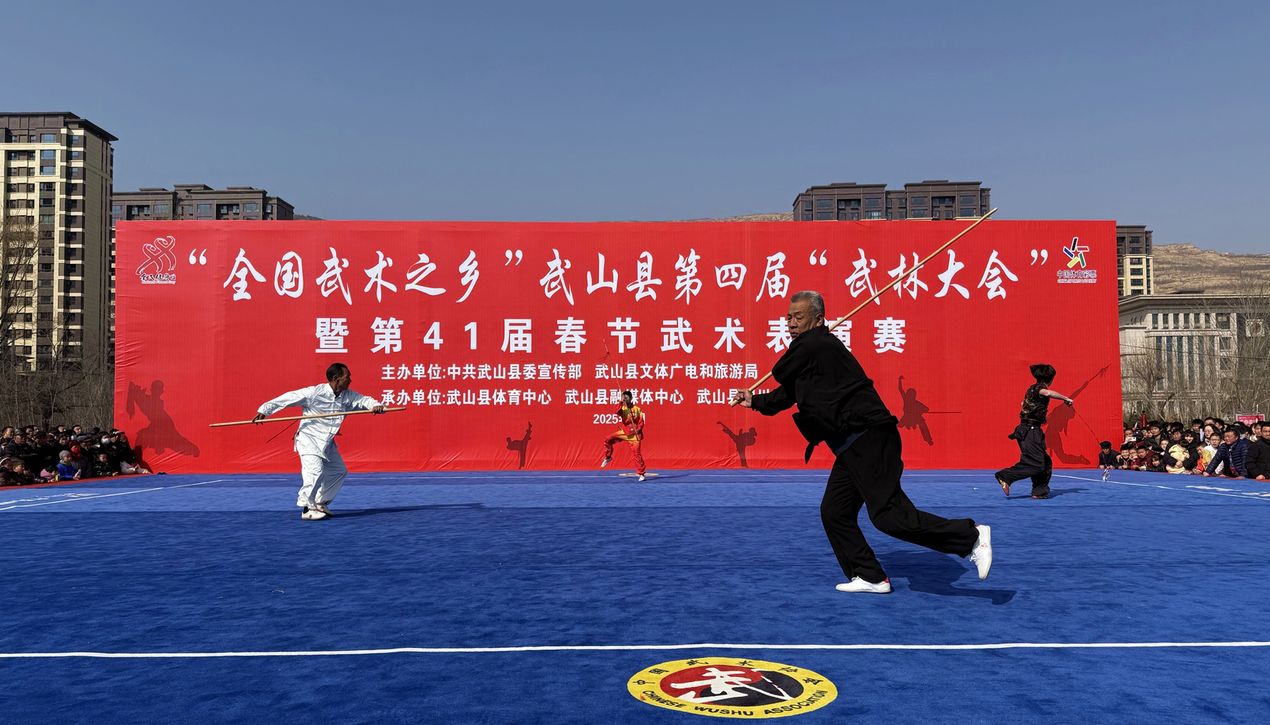 新武山讯(记者 杨耀斌 刘慧茹)2月10日,“全国武术之乡”武山县第四届武林大会暨第41届春节武术表演赛在县人民广场精彩上演,来自全县的武术爱好者齐聚一堂,以武会友,共襄盛举。
