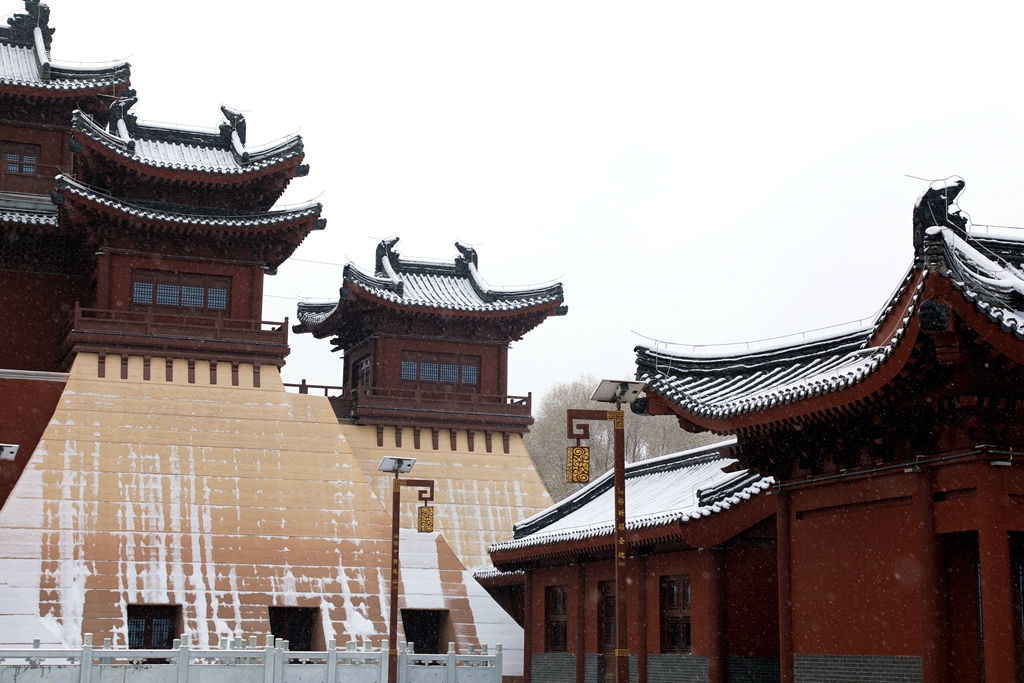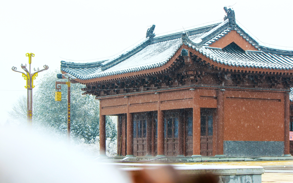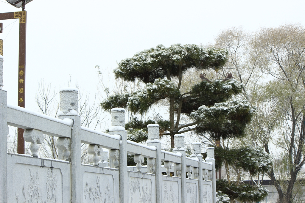 雪花纷扬,悄临武山县摩崖石窟文化旅游区游客集散中心摩崖阁。这座静谧的古典建筑瞬间变成了粉妆玉砌的梦幻雪境。飞檐翘角,恰似灵动的画笔,勾勒出古朴而典雅的线条。琼花点缀,朦胧间仿若仙山琼阁,让人分不清是否置身仙境,成为冬日里的一颗璀璨明珠。(图文:康正东 何慧 赵超 彭雪)