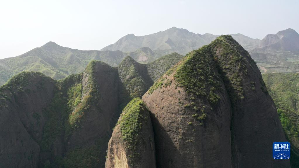 这是拉梢寺露天摩崖浮雕所在的鲁班峡谷丹霞地貌(4月28日摄,无人机照片)。新华社记者 陈斌 摄