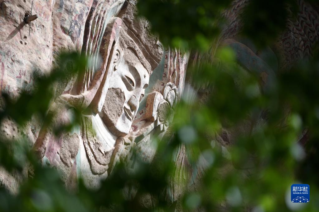 这是4月28日拍摄的拉梢寺露天摩崖浮雕造像局部。新华社记者 陈斌 摄