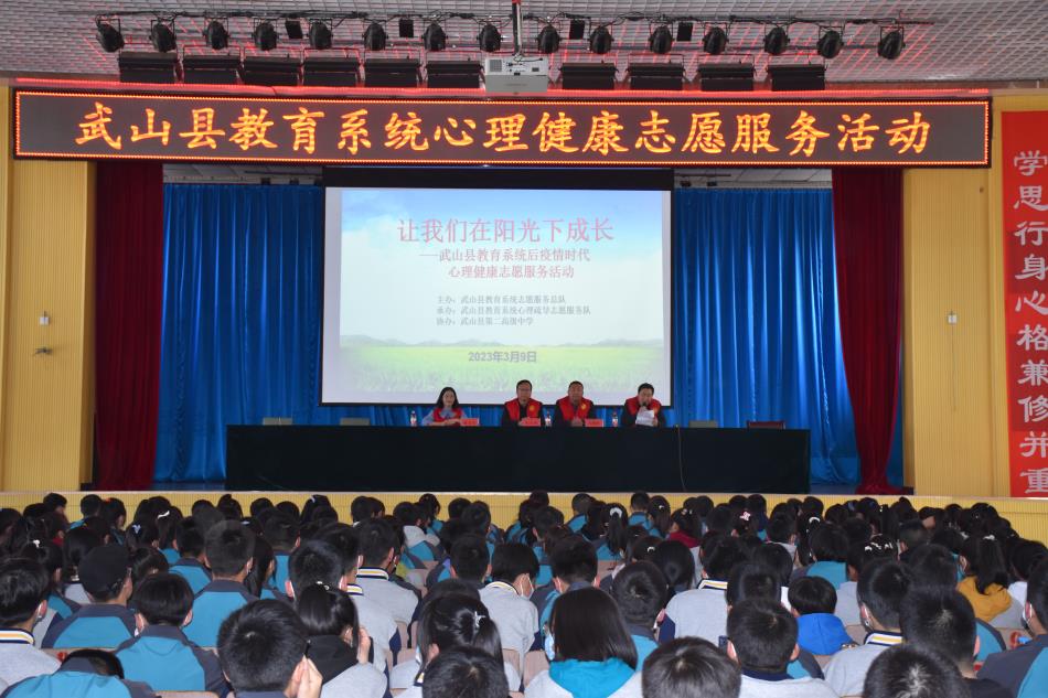 关注学生心理健康是后疫情时代青少年工作的重要内容,也是武山教育系统落实省市县“三抓三促”号令的重要举措。3月9日,武山县教育系统心理健康志愿服务队走进武山县第二高级中学开展“让我们在阳光下成长”为主题的心理疏导活动。