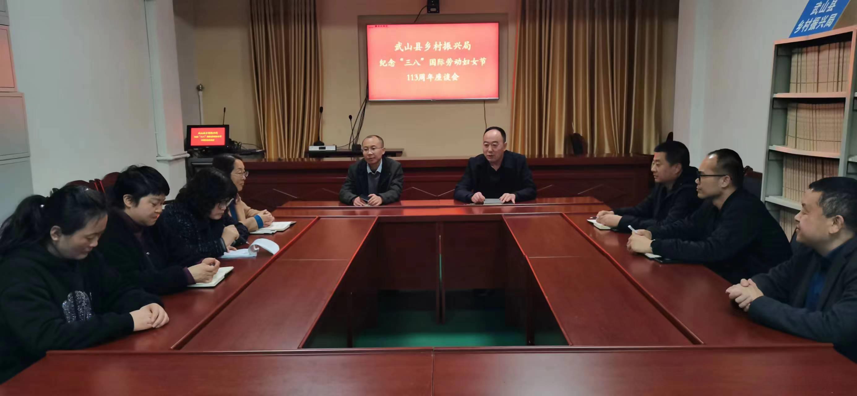 为庆祝第113个“三八”国际劳动妇女节,进一步凝聚巾帼力量,3月7日下午,武山县乡村振兴局组织召开纪念“三八”国际劳动妇女节113周年座谈会,局班子成员及单位女职工参加会议。