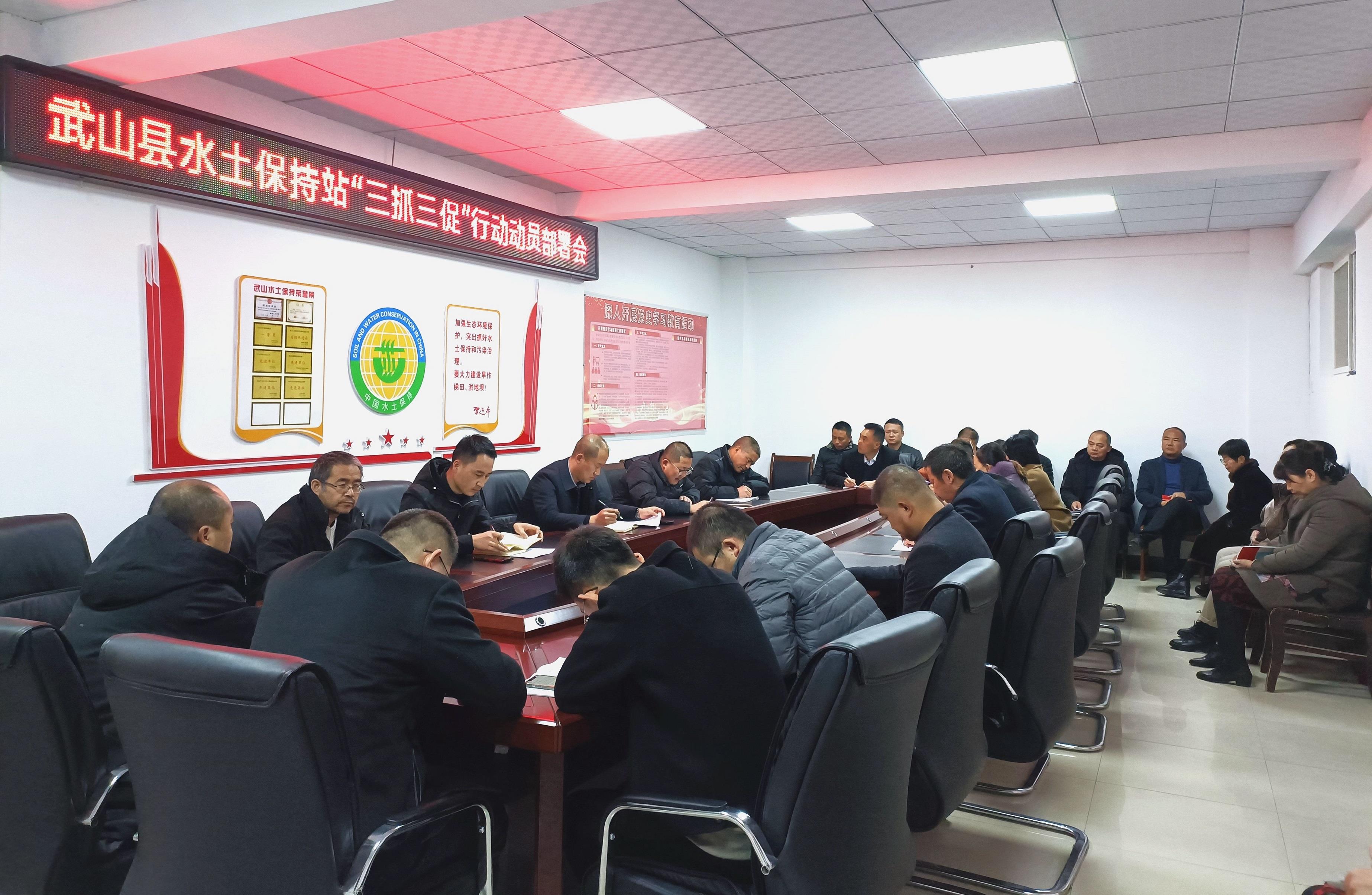 2月27日,武山县水土保持站召开“三抓三促”行动动员部署会议,学习贯彻省、市、县“三抓三促”行动动员部署会议精神,解读《武山县“抓学习促提升抓执行促落实抓效能促发展”行动实施方案》,宣读《武山县水保站“抓学习促提升抓执行促落实抓效能促发展”行动实施方案》,详细安排部署推进落实工作。