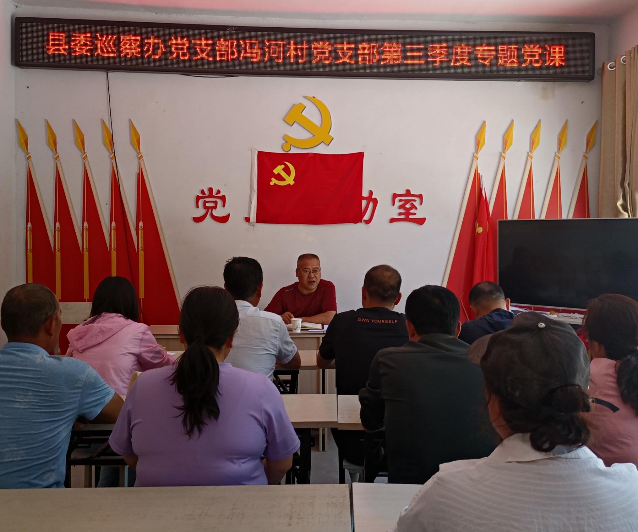 县委巡察办主任刘继元为县委巡察办、冯河村“两委”班子成员及在家党员讲了专题党课,宣讲了省第十四次党代会精神,带领全体参会党员重温了入党誓词。宣讲从过去五年我省取得的历史性进步和成就、未来五年工作的基本安排、推动全省高质量发展的部署要求、全面从严管党治党等四个方面,作了深入解读,并就贯彻落实好省第十四次党代会精神,抓好富民产业培育、村集体经济发展、人居环境整治、矛盾纠纷排查调处、防汛减灾等工作进行了安排部署。与会党员纷纷表示,在今后的工作生活中,将牢记初心使命,继承和发扬党的优良传统和作风,在乡村振兴工作中继续发挥党员的先锋模范作用,以自己的实际行动教育引导广大群众立足自身优势,在乡村振兴和产业发展中再立新功。