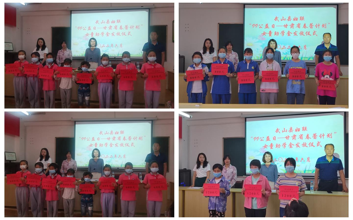 “春蕾计划”是在全国妇联领导下,由中国儿童少年基金会发起并实施的一项救助贫困女学生的社会公益项目。2021年9月,县妇联按照省市妇联要求积极响应“99公益日——春蕾计划”助学金募捐活动,在全县范围内大力开展募捐活动,通过网络募捐、腾讯配捐、妇联统筹,共募集资金13200元,本次救助全县困境中小学生17名,其中小学生8名、初中生6名、高中生3名。发放仪式上,县妇联主席李梦琦介绍了“99公益-甘肃省春蕾计划”助学金来源及春蕾计划项目;县妇联副主席霍文娟通报了项目实施情况,并宣读捐助名单;与会人员为我县17名学生发放了一对一助学金。