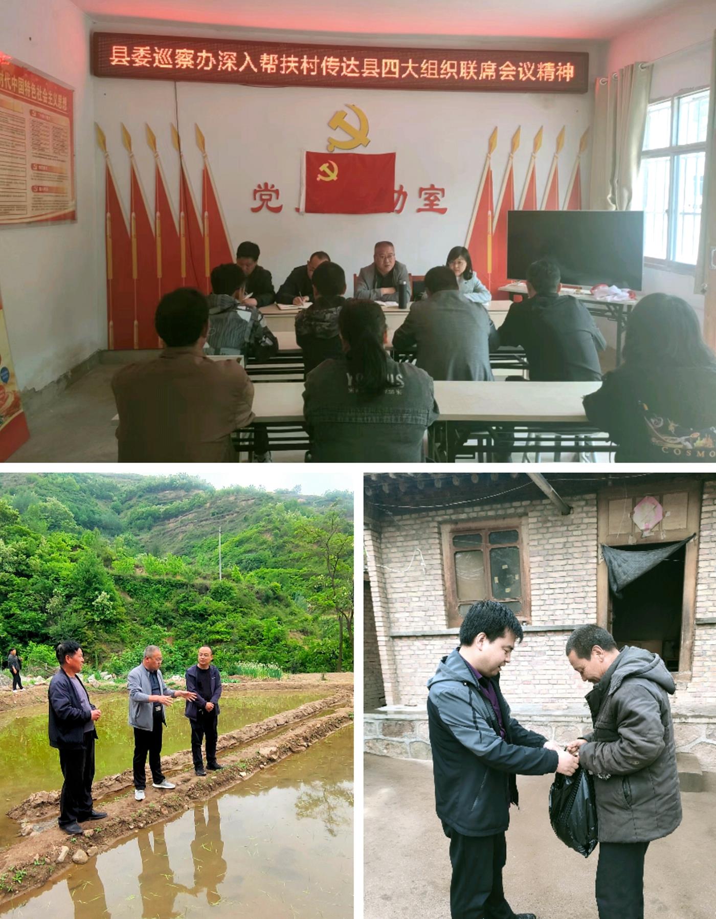 5月25日,县委巡察办深入帮扶村温泉镇冯河村传达学习县四大组织联席会暨全县重点工作推进会议精神,安排对接疫情防控、撂荒地整治、安全隐患排查、人居环境整治、村集体经济发展等工作,实地调研了村集体经济“冯河贡米”发展情况。