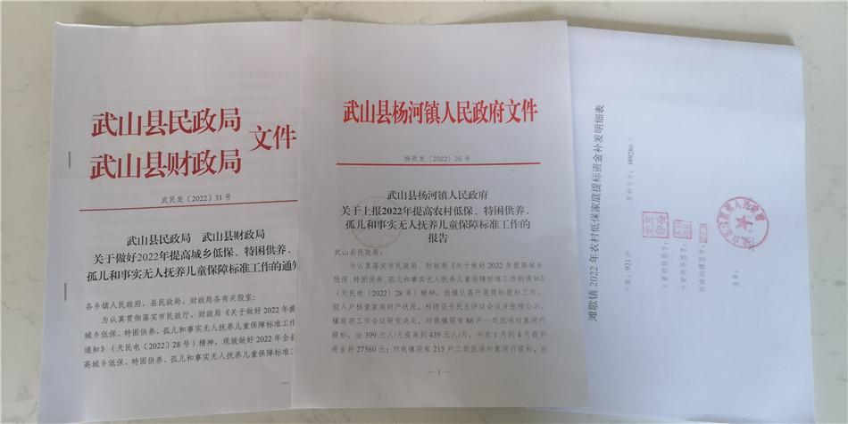 自2022年1月1日起,武山县农村低保标准提高10%,农村低保一、二类保障对象月补助水平由399元和378元分别提高至439元和417元;全县城市低保标准提高8%,由每月636元提高至每月687元;城乡特困人员基本生活标准由每月827元、519元分别提高到894元、571元,照料护理费标准按照保障对象生活自理情况由每月400元、280元、140元分别提高到451元、301元、150元;全县孤儿和事实无人抚养儿童保障标准提高8%,福利机构集中养育的由每月1360元提高至1470元,社会散居的由每月1000元提高至1080元。各类救助对象1-4月已全部按照提标后的标准予以补发,5月开始按照新标准执行,提标工作于4月底全面完成。