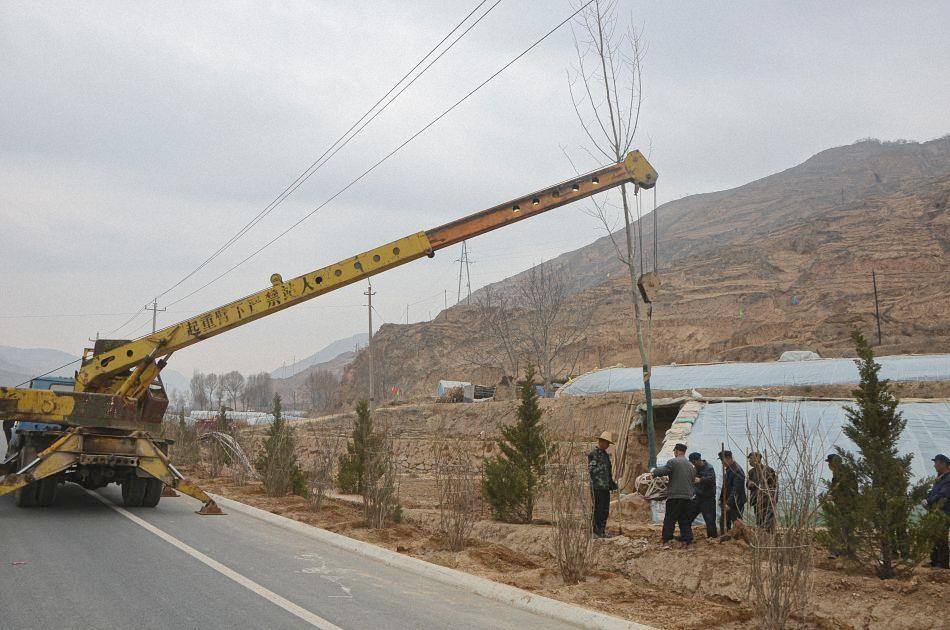 眼下正是造林绿化的好时节,水帘洞旅游专线、310国道等道路的植树现场一片繁忙的景象,吊车正在将一棵棵高大的法桐从卡车上吊起,工人正忙挖坑栽植、扶树固定,浇水定植,全县生态长廊建设和国土绿化正在有序收尾。今年,武山县围绕“一线两景三园五域八结合”的林草发展思路,着力打造“三季有花、四季常青”的道路景观长廊,重点实施水帘洞旅游专线、候白路、四马公路等道路绿化工程,完成15个乡镇新栽植行道树170公里,栽植云杉、栾树、塔柏、法桐、旱柳、杨树、花石榴、丽桃等树种12万株。