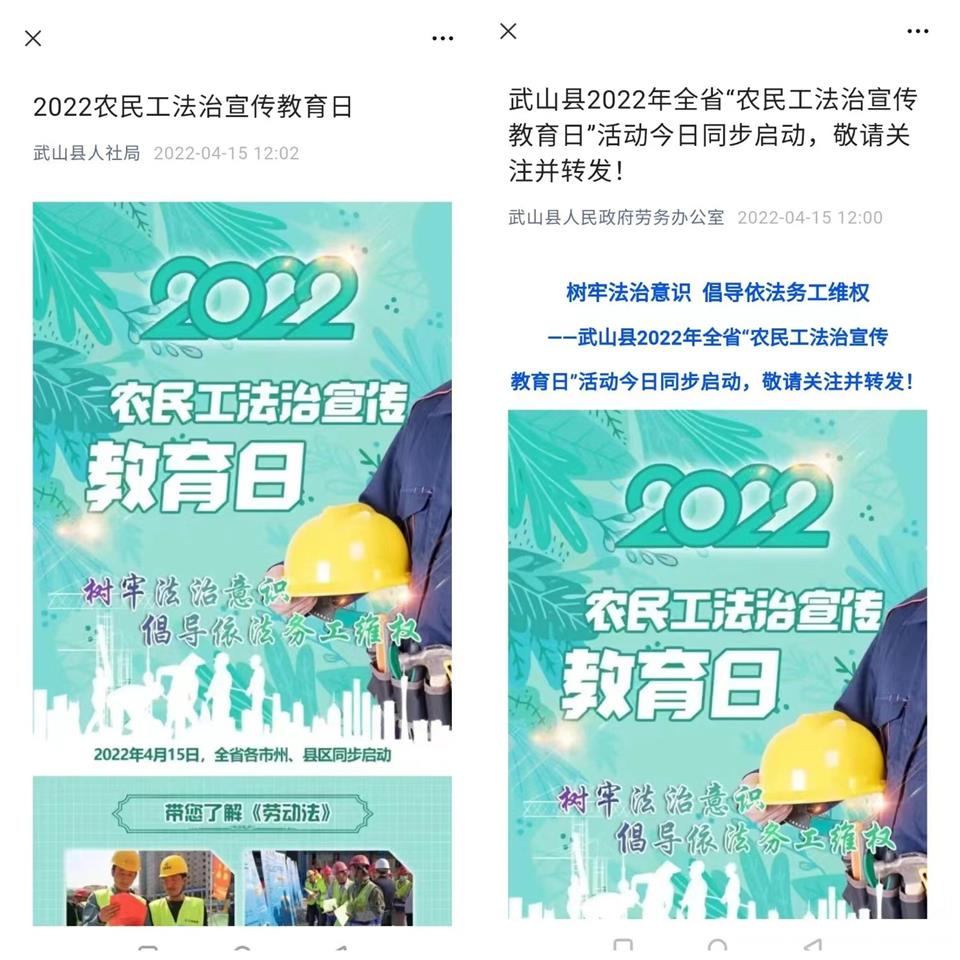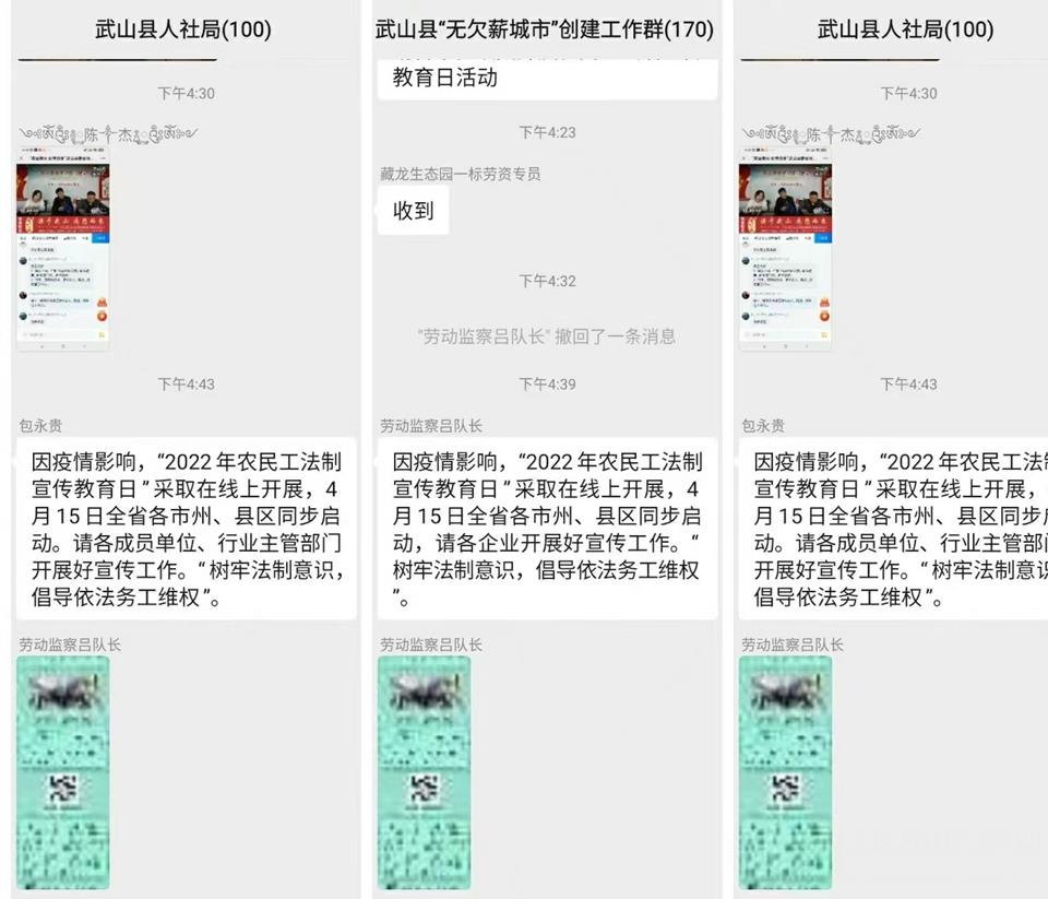 县政府农民工工作领导小组办公室以高度政治自觉,认真研究制定宣传工作方案,因近期疫情影响,结合我县防控形势,主要采取线上开展宣传活动的方式,通过公众号、微信群等媒介平台,为农民工提供多方位政策法律解读、权益维护和法律援助等服务,重点向农民工和用人单位推送、转发、宣传解读《劳动法》《劳动合同法》《社会保险法》《工伤保险条例》《保障农民工工资支付条例》《安全生产法》《职业病防治法》等法律法规。同时,创新形式,认真开展安全生产和职业卫生宣传教育,着力提高农民工的自我保护意识,积极引导用人单位自觉维护农民工合法权益。