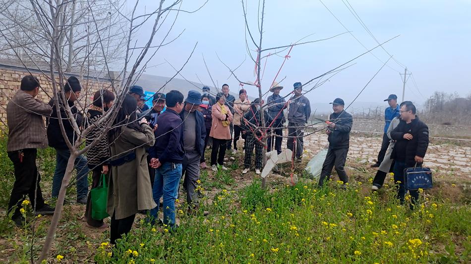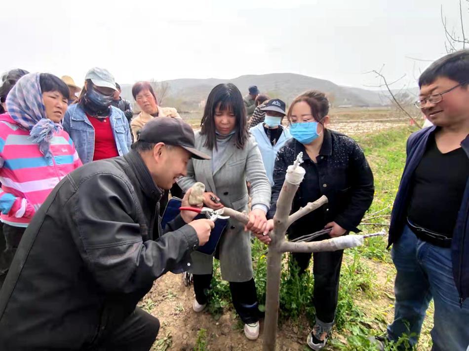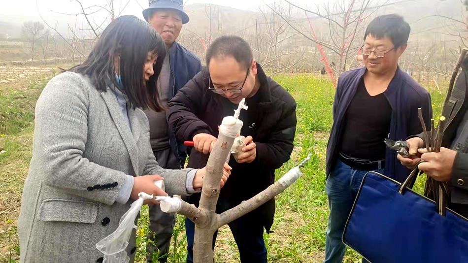 活动当天,果业中心技术人员早早地来到约定果园等待天衢村、孙堡村果农群众。活动开始后,技术人员按照果农需求将接穗分发到户,之后开展了嫁接技术要点指导培训。培训中介绍了接穗的品种特性和市场前景,讲解了嫁接技术要点,并手把手做了演示,确保大家掌握技术要领。