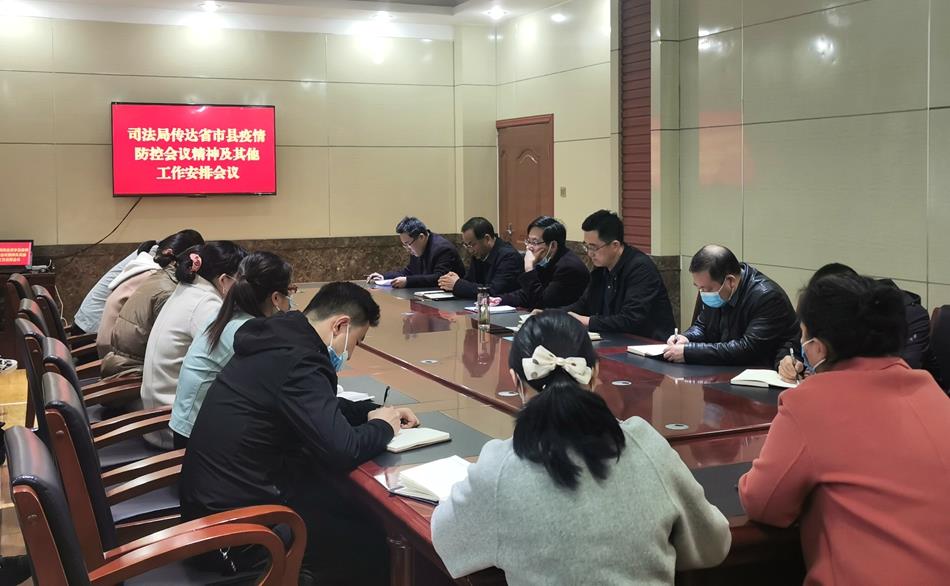 一是强化组织领导,安排部署到位。会议传达了上级有关部署要求,全面安排部署司法行政系统疫情防控工作,要求全系统深刻认清当前疫情防控严峻形势,切实把思想和行动统一到习近平总书记重要指示精神上来,统一到上级的决策部署上来,坚决扛起疫情防控政治责任。党组成员率先示范,各司其职、各负其责,在单位内部防控、包抓小区值班值守、涉疫法律宣传等方面统筹推进疫情防控,确保做实做细各项防控措施。