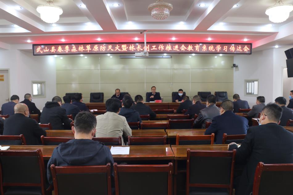 3月15,武山县教育局迅速传达学习全县春季森林草原防灭火暨林长制工作推进会精神,局党组成员、相关股室负责人、各学区书记,高中、初中阶段学校校长共计40余人参加会议。