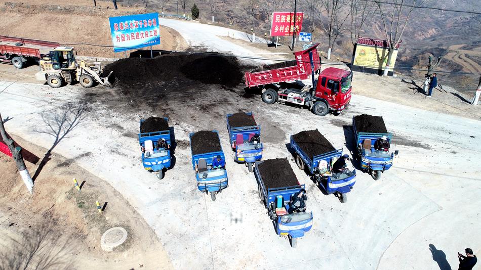 当前,正值春耕备耕的关键时期,西梁旱作农业综合示范区车辆来往穿梭在田间道路上,一批批腐熟好的粪肥被迅速运送到田间地头,呈现一片繁忙景象。