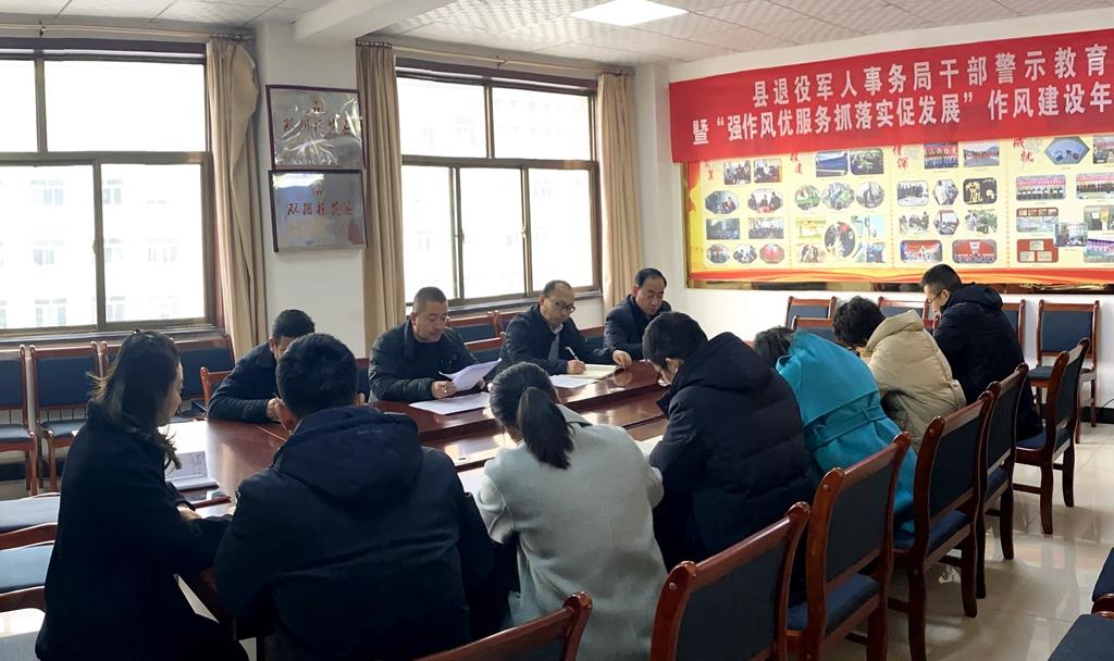 会议组织观看了《蜕变的初心》警示教育片,传达学习了全县领导干部警示教育大会暨作风建设年活动动员大会精神及县委书记王新强讲话精神,宣读了《武山县退役军人事务局开展“强作风、优服务、抓落实、促发展”作风建设年活动实施方案》。