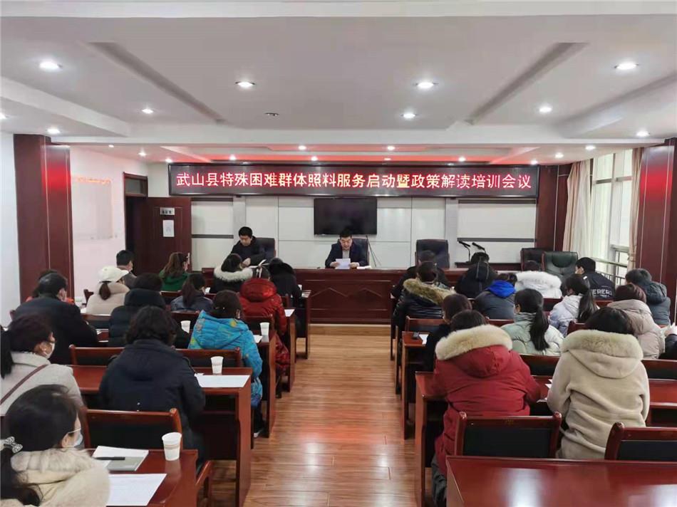 2月17日,武山县民政局组织召开特殊困难群体照料服务启动暨政策解读培训会议。来自县政府购买服务中标的四家服务商负责人和服务人员共计48人参加了培训会。