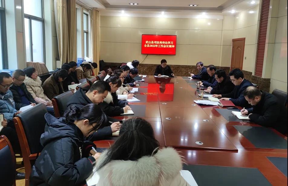2022年2月17日,武山县司法局召开全体干部职工会议,传达学习全县2022年工作会议精神,并就贯彻落实会议精神进行了具体安排部署。局党组书记、局长张飞豹同志主持会议,局机关全体干部参加。