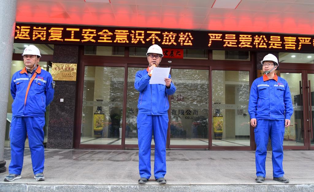 “我的安全我负责,他人安全我有责,公司安全我尽责,安全风险我辨识,安全环境我确认,安全隐患我消除,‘三违’行为我抵制,在岗一分钟,安全六十秒。”2月16日上午8时20分,天水祁连山水泥有限公司在办公楼前组织全体员工进行复工复产安全宣誓活动,在公司副总经理王学飞的带领下,全体员工庄严地举起右手并郑重宣誓。