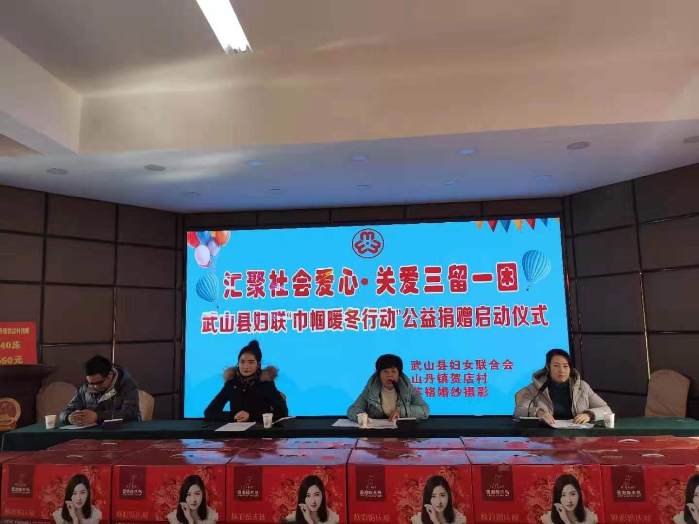 严寒挡不住送关怀的脚步,隆冬止不住一颗颗送温暖的爱心。1月19日,县妇联携手苏格婚纱摄影在山丹镇贺店村开展了“汇聚社会爱心·关爱三留一困”巾帼暖冬行动公益捐赠(爱心摄影)启动仪式。县妇联领导、山丹镇妇联及镇村干部、苏格婚纱摄影公司全体员工、贺店村受助妇女共计70多人参加了捐赠仪式。