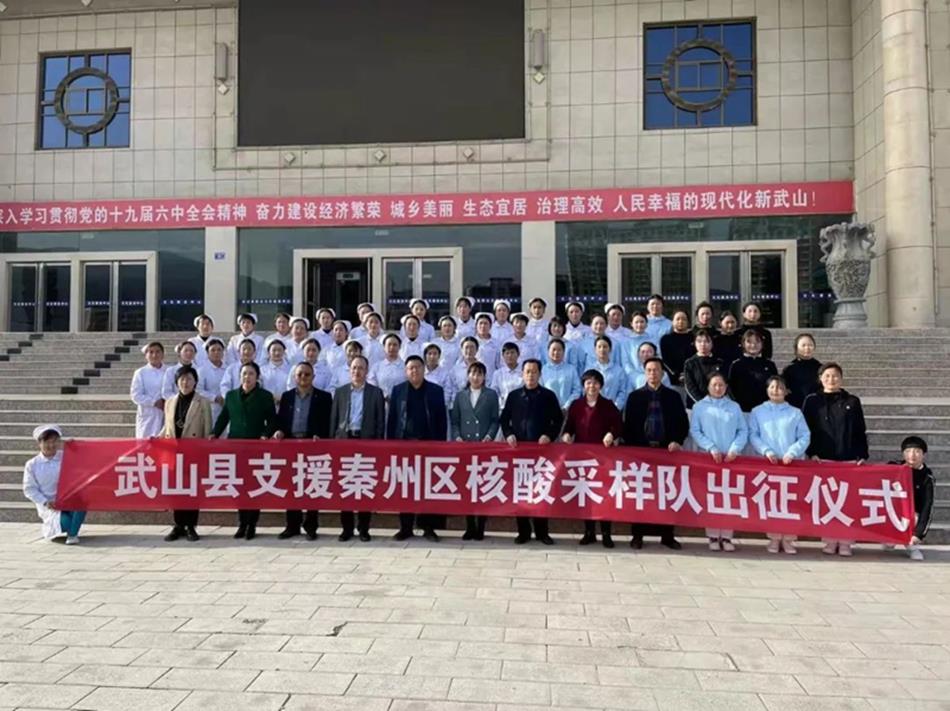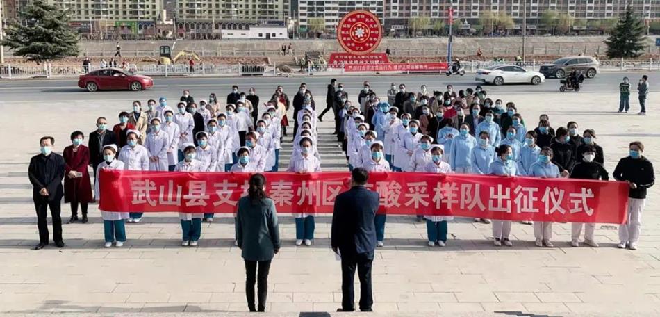 3月23日,武山县举行支援天水秦州区核酸采样队出征仪式,县委常委、宣传部部长胡丽霞出席出征仪式,县中医医院、县妇幼保健计划生育服务中心班子成员及支援天水秦州区医疗队全体成员及部分家属、职工代表参加仪式。