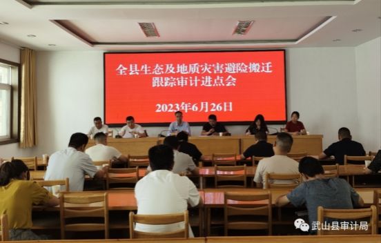 为深入贯彻落实省市生态及地质灾害避险搬迁跟踪审计安排部署会精神,有力有序推进我县地质灾害避险搬迁工作,6月26日下午,县审计局组织召开全县生态及地质灾害避险搬迁跟踪审计进点会。县审计局、县自然资源局负责同志,县发改局、县财政局、滩歌镇、山丹镇、榆盘镇等15个单位分管领导以及审计组全体人员参加了会议。