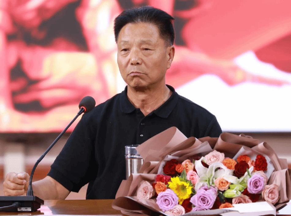 县关工委常务副主任颉卫星首先结合自己亲身经历对刘阿平、张金星两位战斗英雄的基本情况作了详细介绍,学生代表为两位英雄送上鲜花,深切表达了对老英雄的崇高敬意。