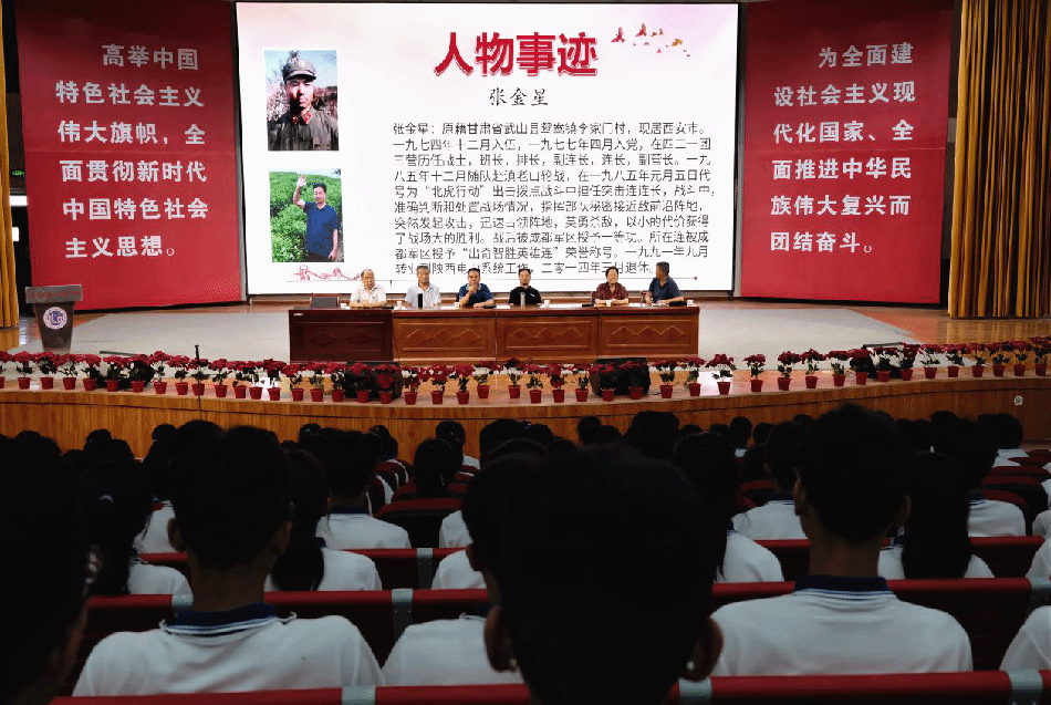 习近平总书记指出:“一个有希望的民族不能没有英雄,一个有前途的国家不能没有先锋。包括抗战英雄在内的一切民族英雄,都是中华民族的脊梁,他们的事迹和精神都是激励我们前行的强大力量。”为引导广大青少年铭记革命历史、崇尚革命英雄、传承红色基因,厚植爱国情怀,落实习近平总书记关于“把红色基因一代代传下去”指示精神,8月11--12日,武山县关工委特邀对越自卫反击战战斗英雄刘阿平、一等功臣张金星深入武山县第一高级中学,第三高级中学开展“传承红色基因,赓续红色血脉”爱国主义教育报告会。