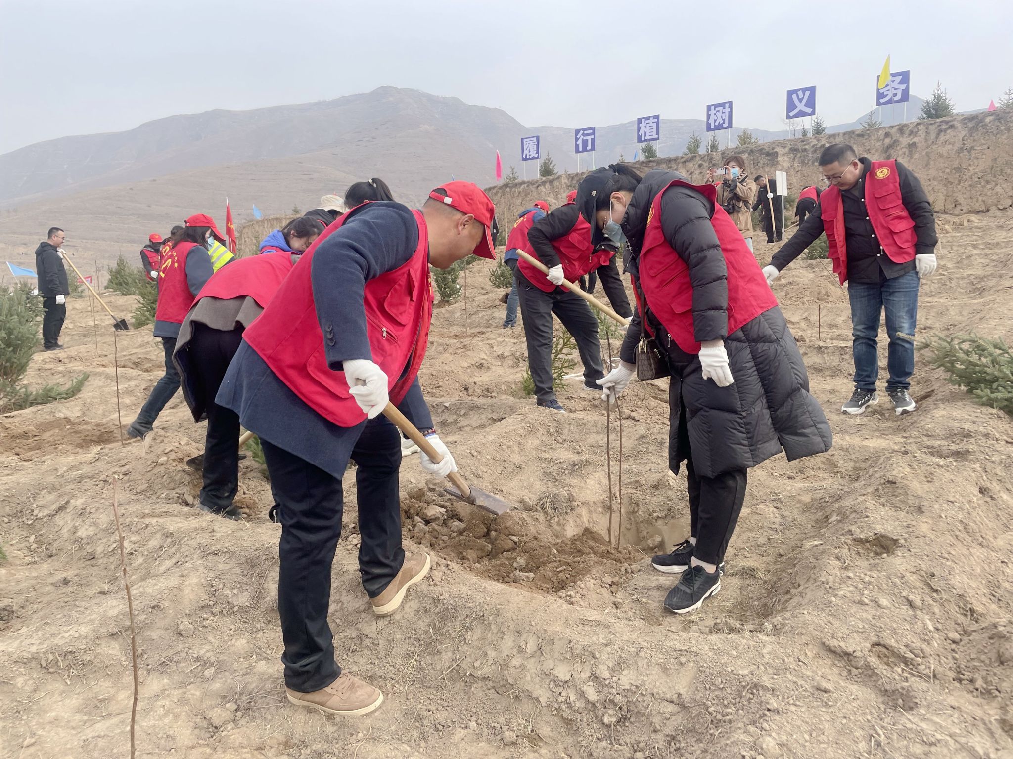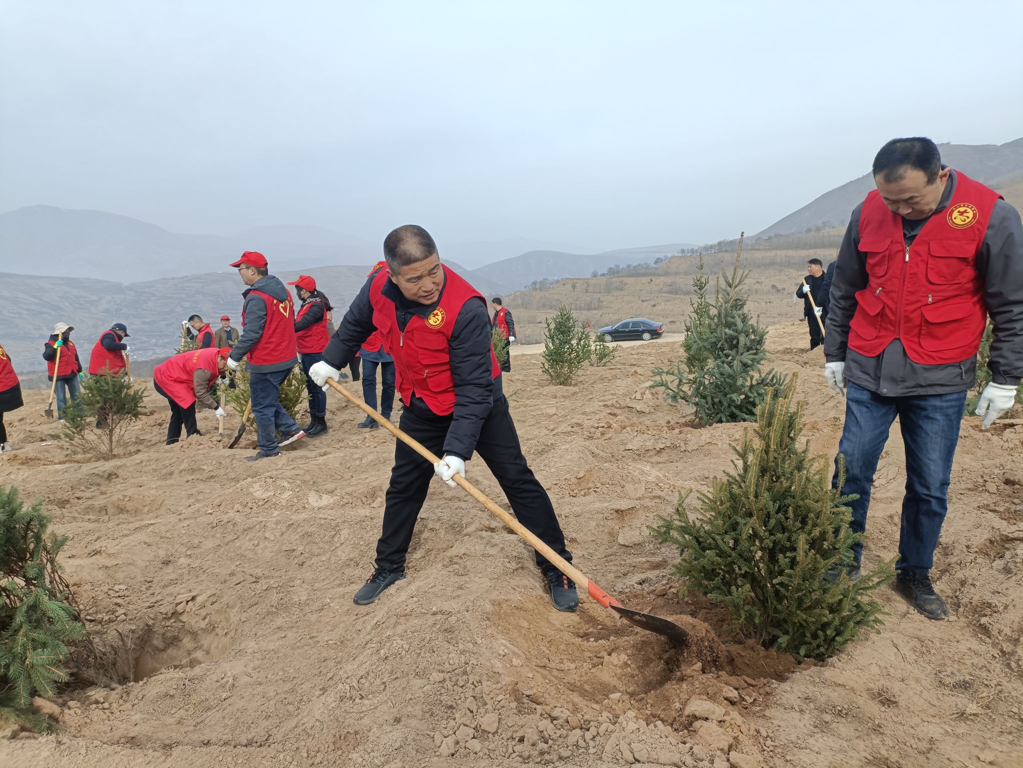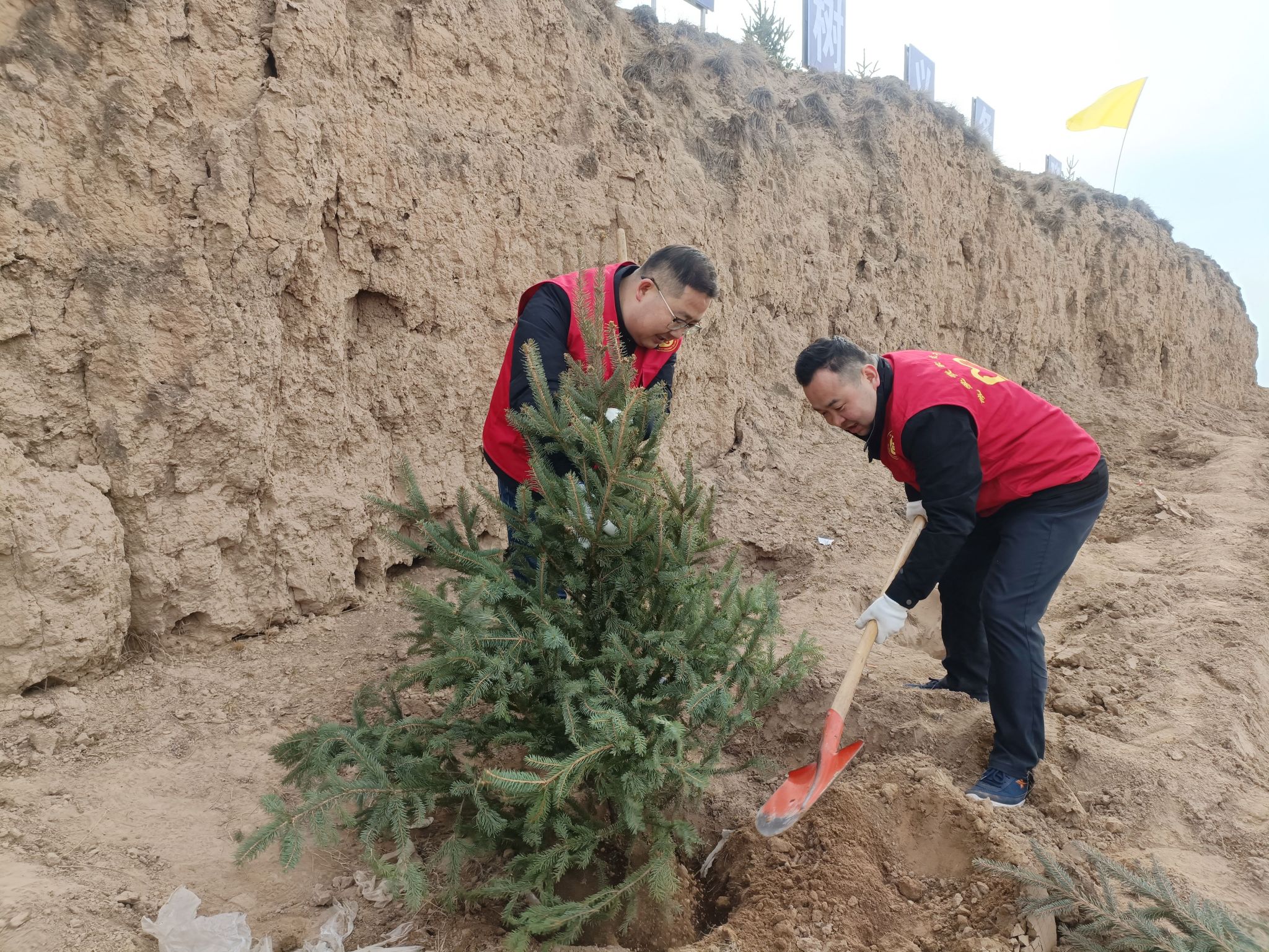 活动现场,身穿“红马甲”的水保志愿者们分工协作、配合默契,有的挥锹挖坑、有的扶苗填土、有的围堰浇水,个个热情高涨、干劲十足,现场一片热火朝天的劳动景象。忙碌过后,300余株种好的云杉和红叶李迎风而立,在明媚的阳光中展现勃勃生机。