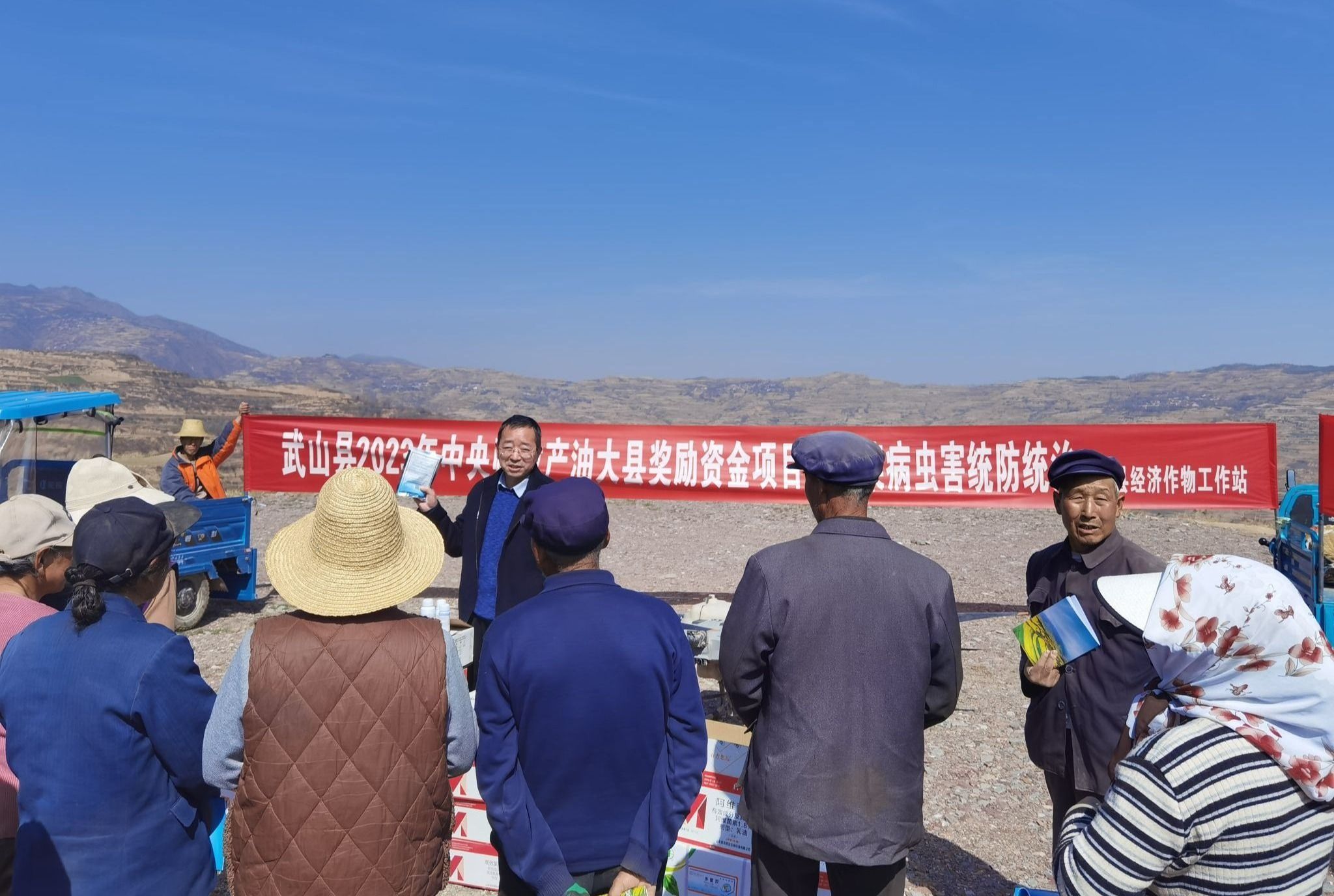 一年之计在于春,不误农时不误春。当前正值冬油菜返青期,也是冬油菜病虫害防治的关键时期。为及早防控冬油菜病虫害,从源头上遏制病虫害的发生,确保夏油稳产增收,3月22日,县农业农村局组织技术人员深入四门镇兰屲、西堡村千亩冬油菜集中连片种植基地,利用植保无人机进行病虫害统防统治,并开展田间管理技术培训。