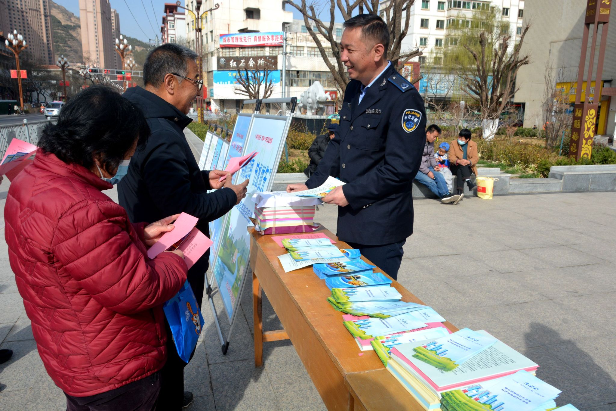 举办广场集中宣传。武山县水务局在宁远广场布置主会场、悬挂横幅、设置咨询台举办宣传活动。开展《中华人民共和国黄河保护法》《节约用水条例》《地下水管理条例》《国家节水行动方案》等水法律法规、行业节水知识宣传,引导社会公众树立依法治水意识。活动现场,工作人员集中发放水法律法规宣传资料、宣传品、倡议书。