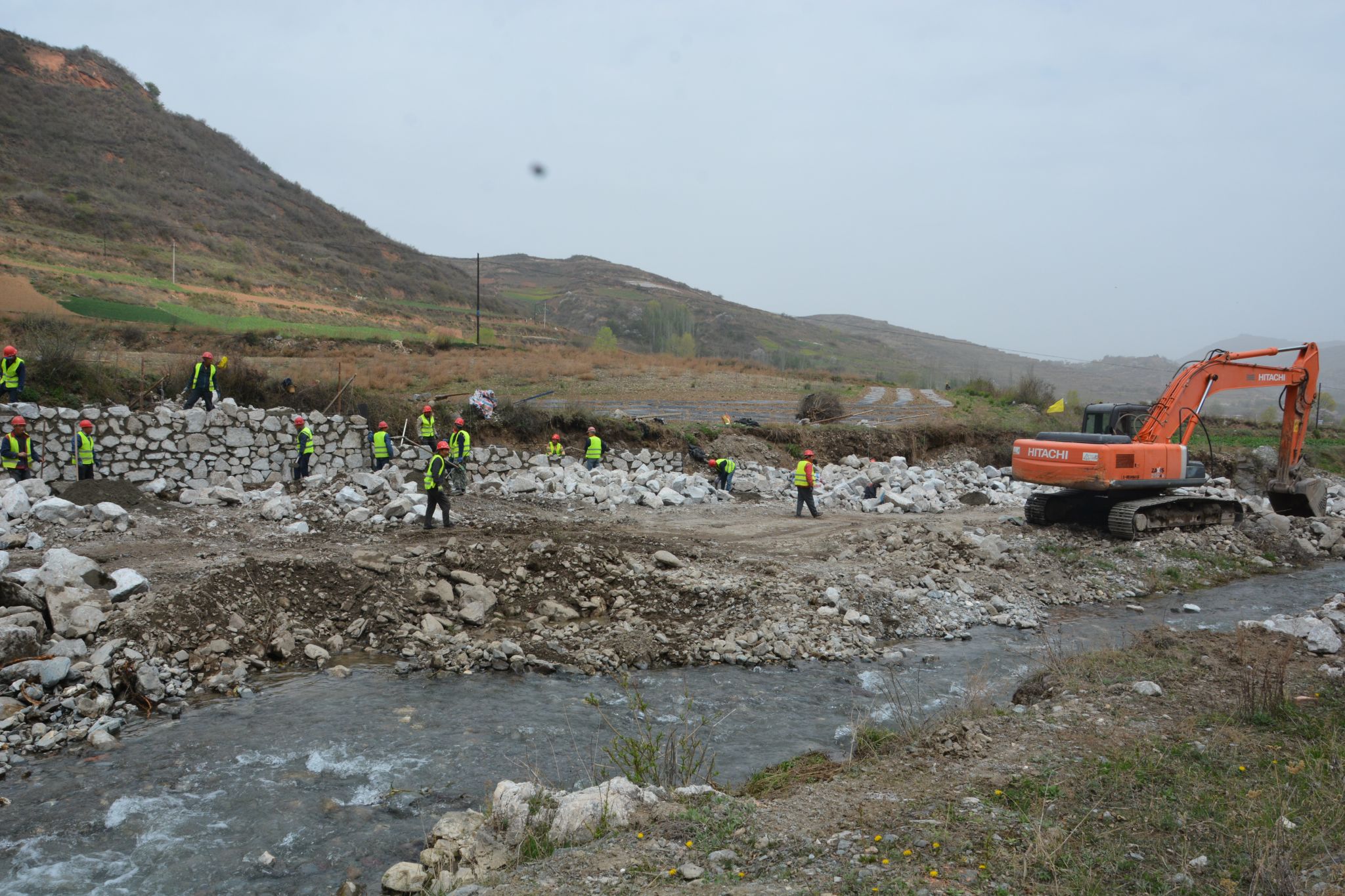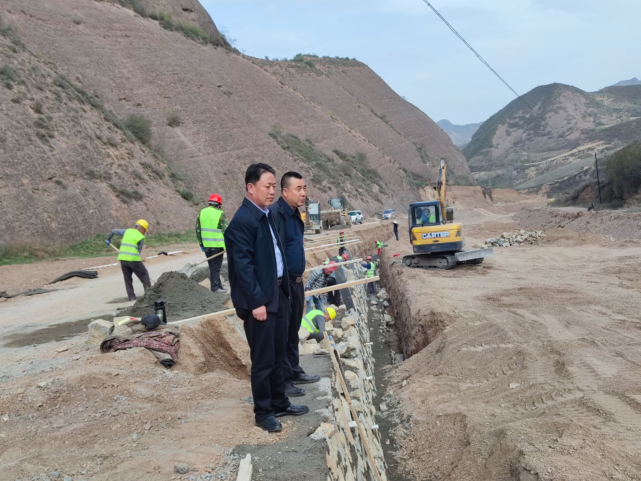 位于武山县上河峪沟山洪沟防洪治理工程施工现场,机械轰鸣、清基、筑堤,施工现场热火朝天,工程管理人员和技术人员、监理深入一线,现场指导,旁站监督,受益镇村积极协调配合,工程建设有序开展。