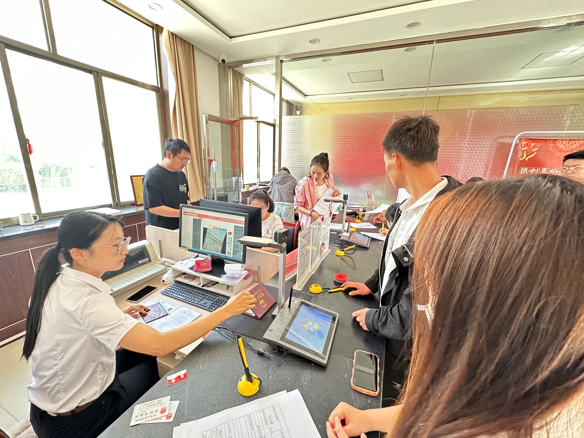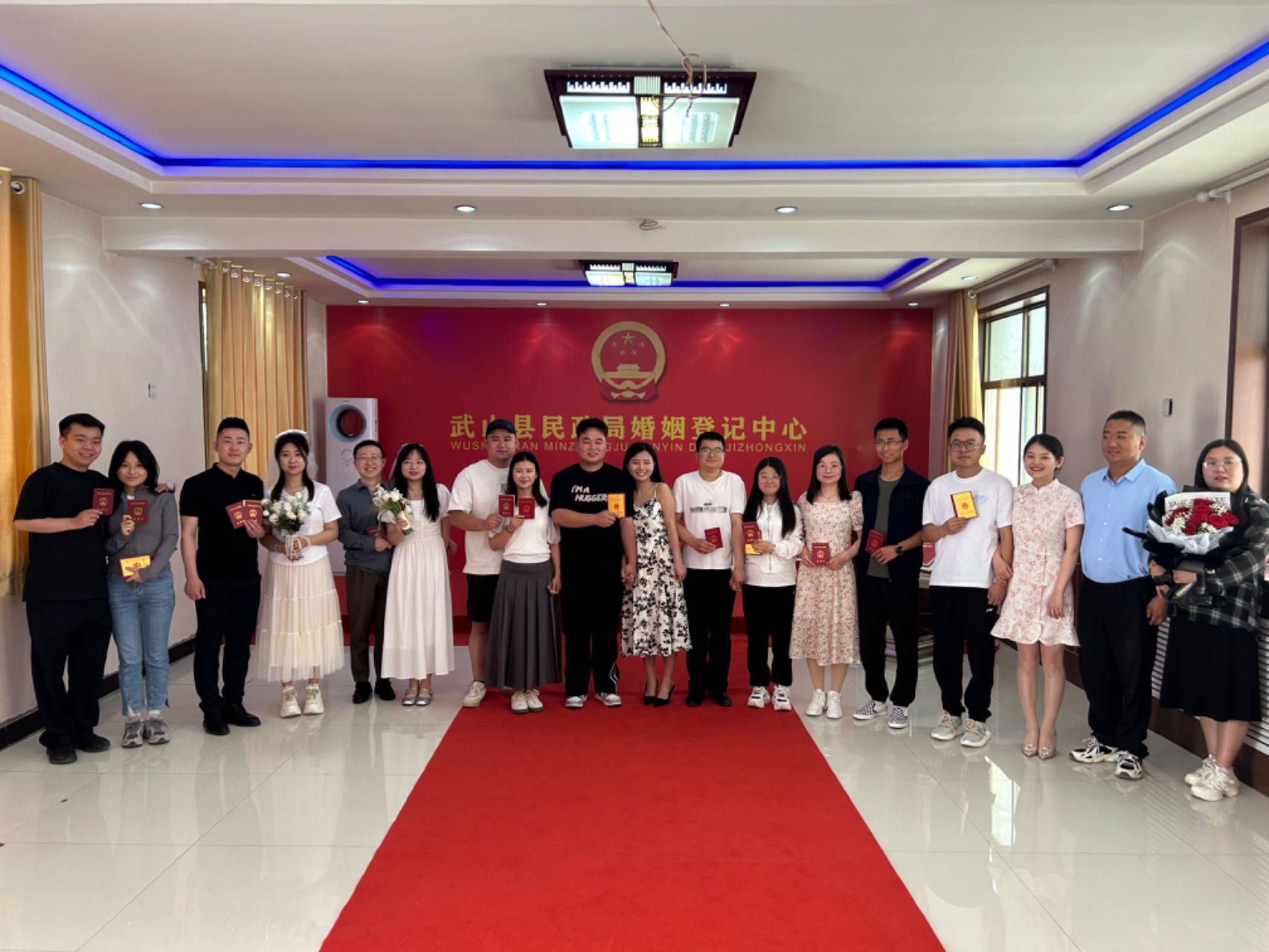 优化服务举措,畅通办事流程。全员提前到岗,调试设施设备,检测登记系统,有效保障登记工作顺利开展。增设引导岗位,现场维持秩序、审核证件材料、发放登记号码,有效保障登记工作依规进行。开设临时等待区,指导新人填写材料,介绍办理流程,讲解相关注意事项,有效保障登记工作有序推进。5月20日当天,共为106对新人办理了结婚登记,当天来的所有新人都高兴而来,满意而归。