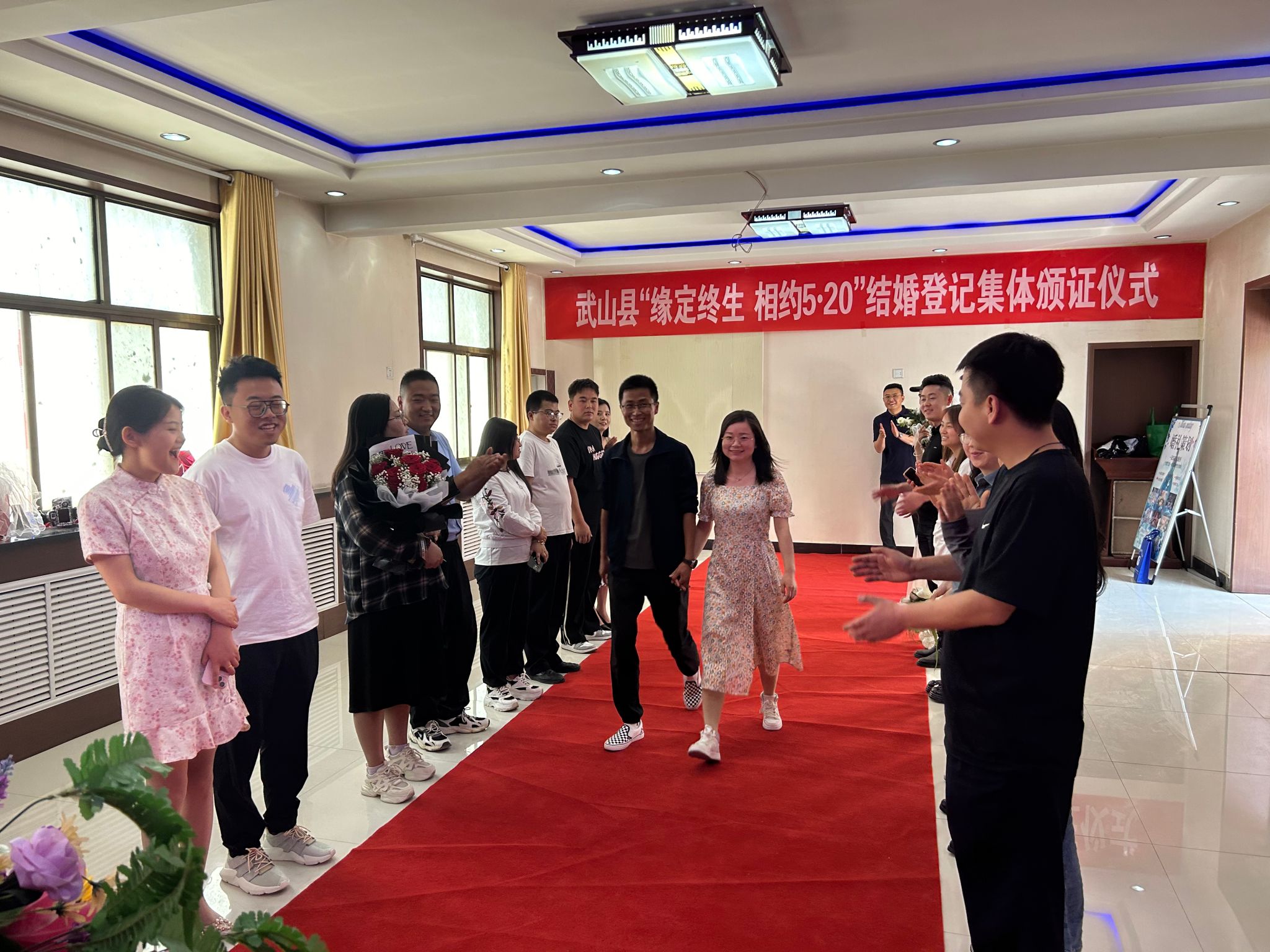 倡导文明婚俗,弘扬时代新风。精心布置了婚姻登记和颁证大厅,为新人打造温馨浪漫的结婚登记环境。举行了“缘定终生·相约520”集体颁证仪式,为10对新人代表颁发了结婚证并赠送了纪念品。现场发放婚俗改革宣传册200册,积极传递文明、健康、理性婚恋观念,弘扬简约适度、现代文明的婚俗新风尚。