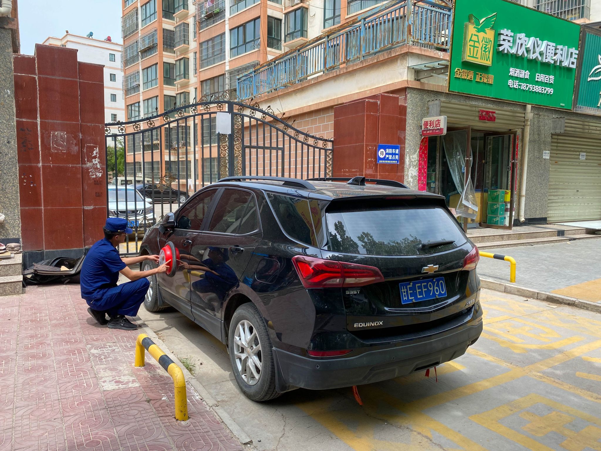 检查过程中,大队监督执法人员发现个别小区存在车辆违停堵塞消防通道的现象,由于联系不上车主,消防监督员现场对该车辆违停行为拍照取证并开具“电子告知单”。将违停车辆的车牌、位置、违停时间、照片和视频等证据上传至后台管理系统,依法将“电子告知单”贴在车辆驾驶位的门上,并登录后台管理系统一键锁定,同时短信提醒违法行为人到消防部门接受处理。违法行为人通过扫描“电子告知单”上的二维码,按照提示接受相应处理后,才可取下“电子告知单”。“电子告知单”的最终目的不是处罚而是监督大家遵守规则不违法占用堵塞消防通道。