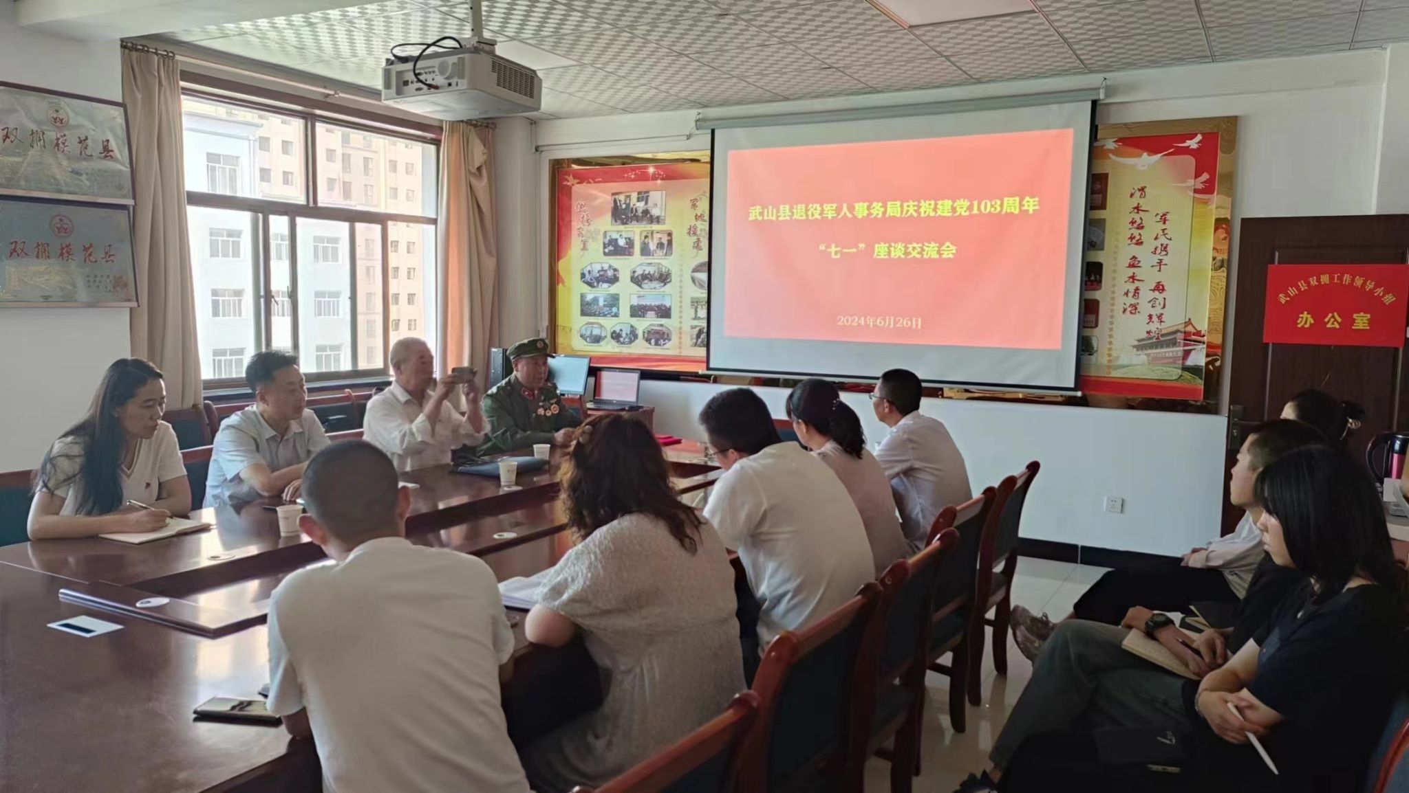 在建党103周年来临之际,武山县退役军人事务局按照县委部署,扎实开展座谈交流、专题党课、走访慰问、重温入党誓词等系列活动。主要目的是重温党的光辉历程,弘扬伟大建党精神,激励斗志,教育引导全体党员干部铭记历史、牢记使命、踔厉奋发、踏浪前行,在新时代新征程上守正创新、奋勇拼搏、再立新功、再创佳绩,奋力推动新时代退役军人工作高质量发展。