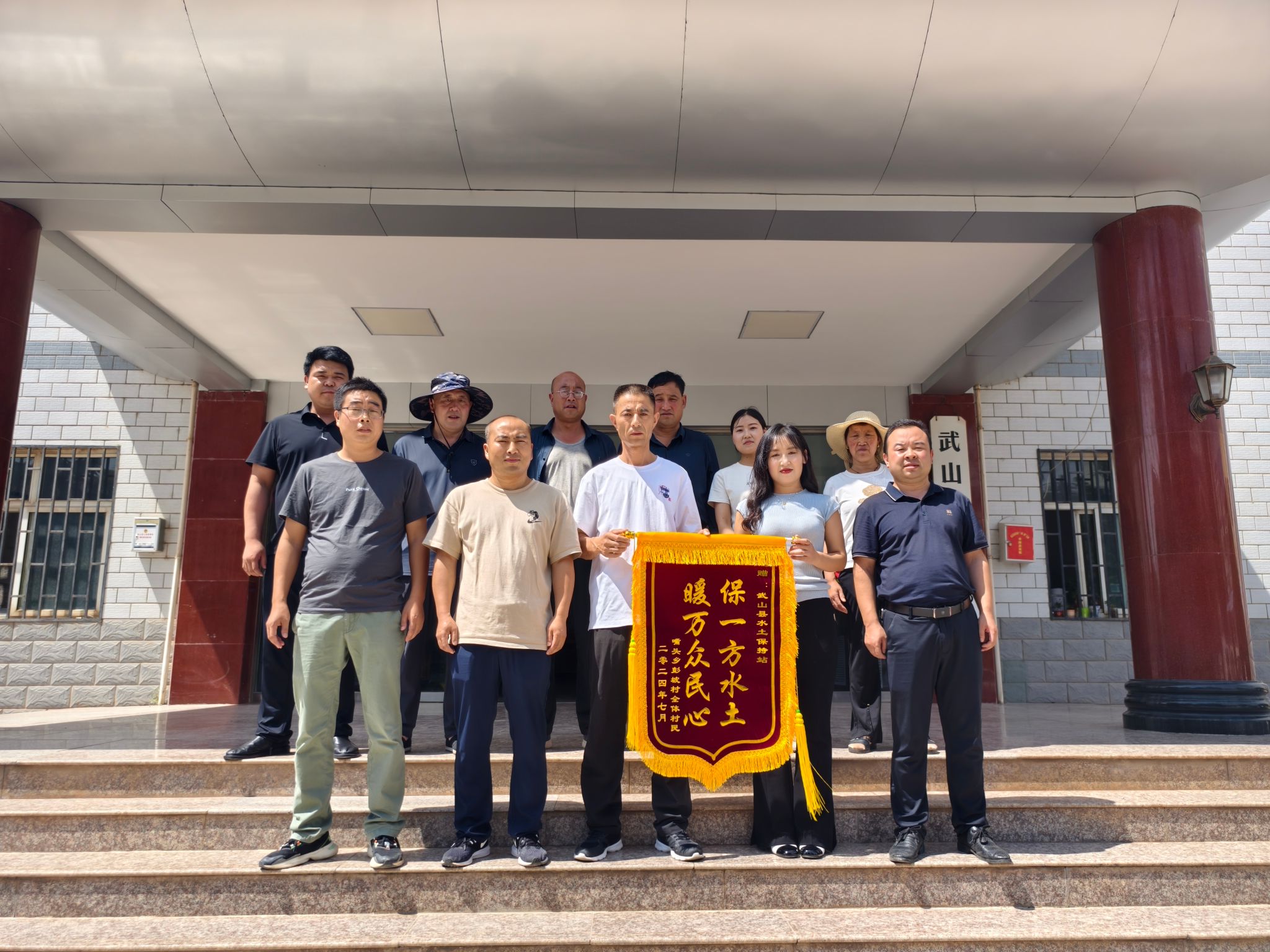 近日,嘴头乡彭坡村村委会和群众将一面写有“保一方水土,暖万众民心”的锦旗送到了武山县水保站,对县水保站在彭坡村实施的水保项目给村里带来的惠利表示诚挚感谢。