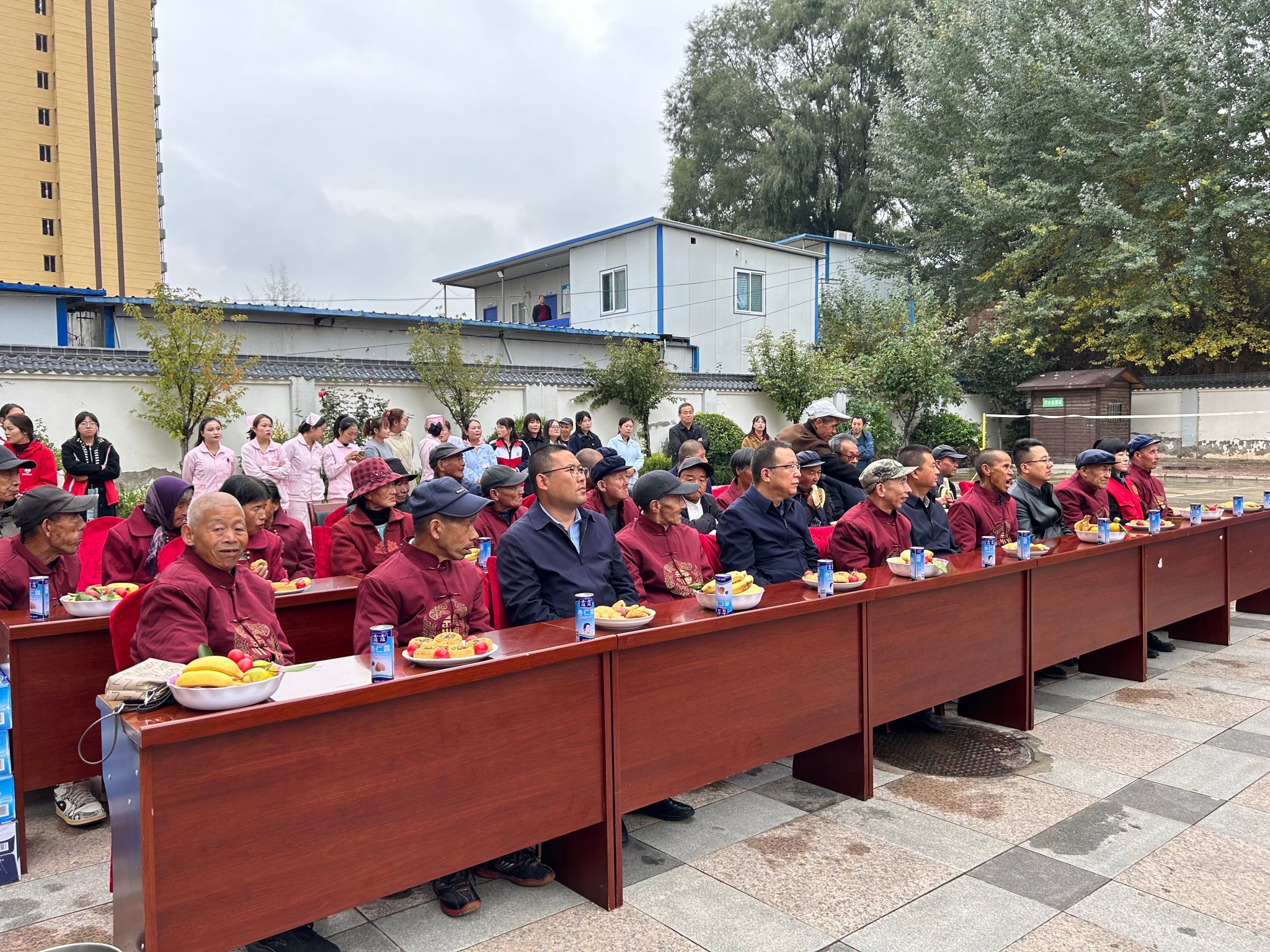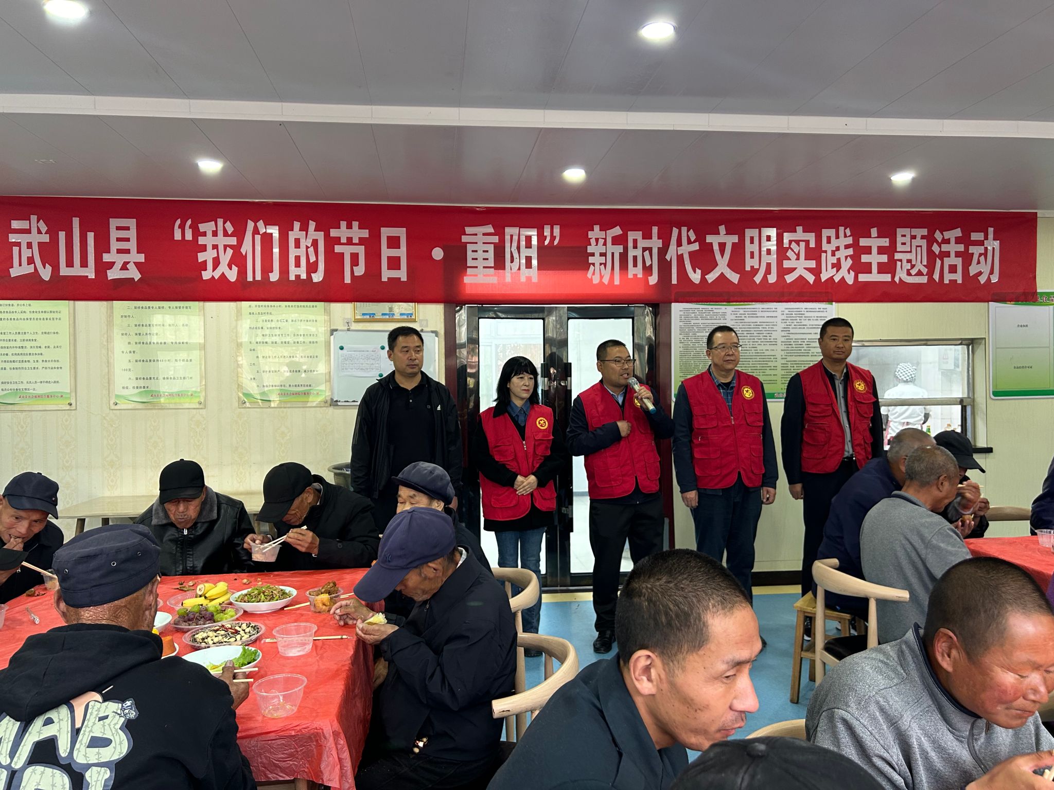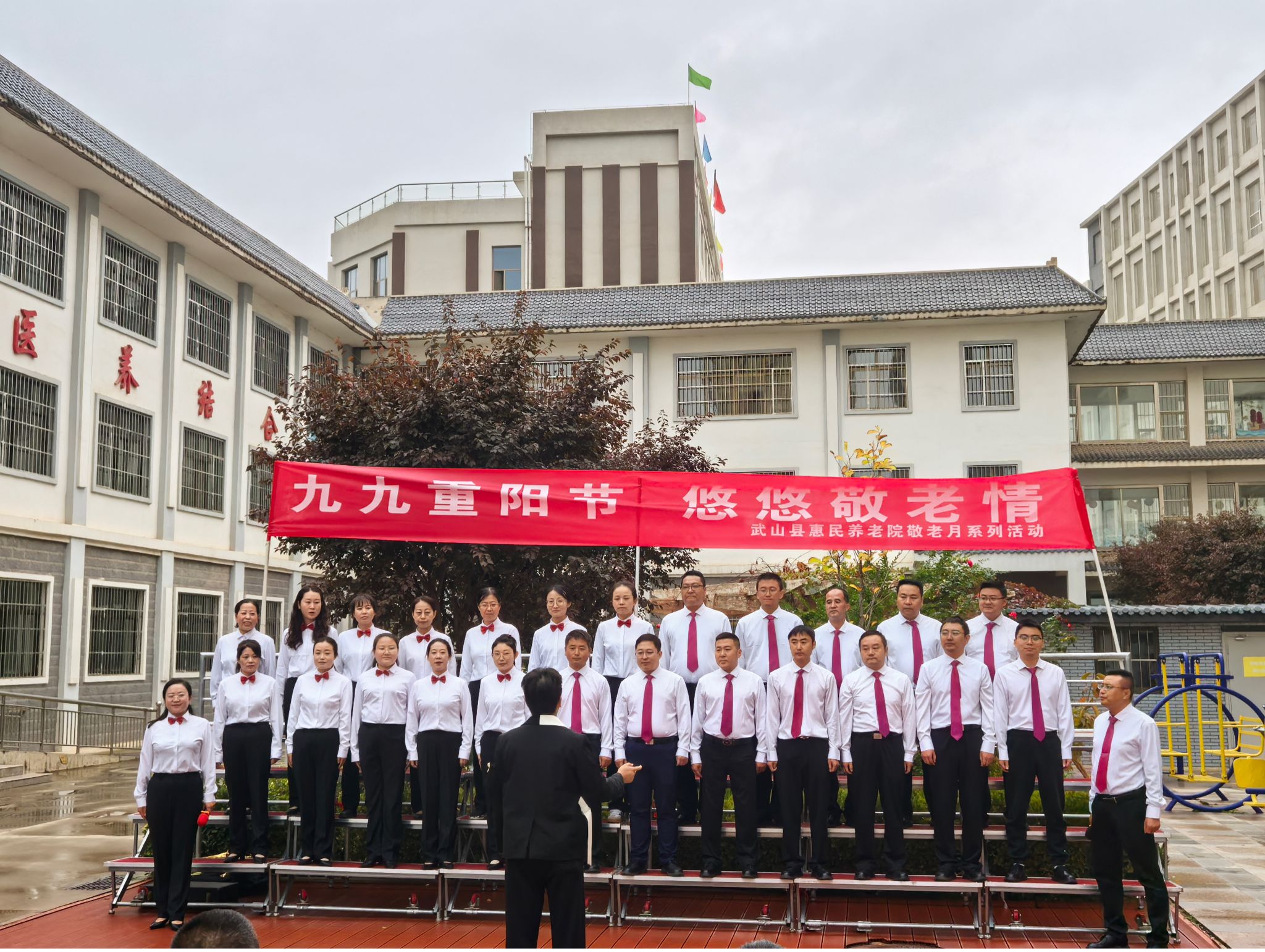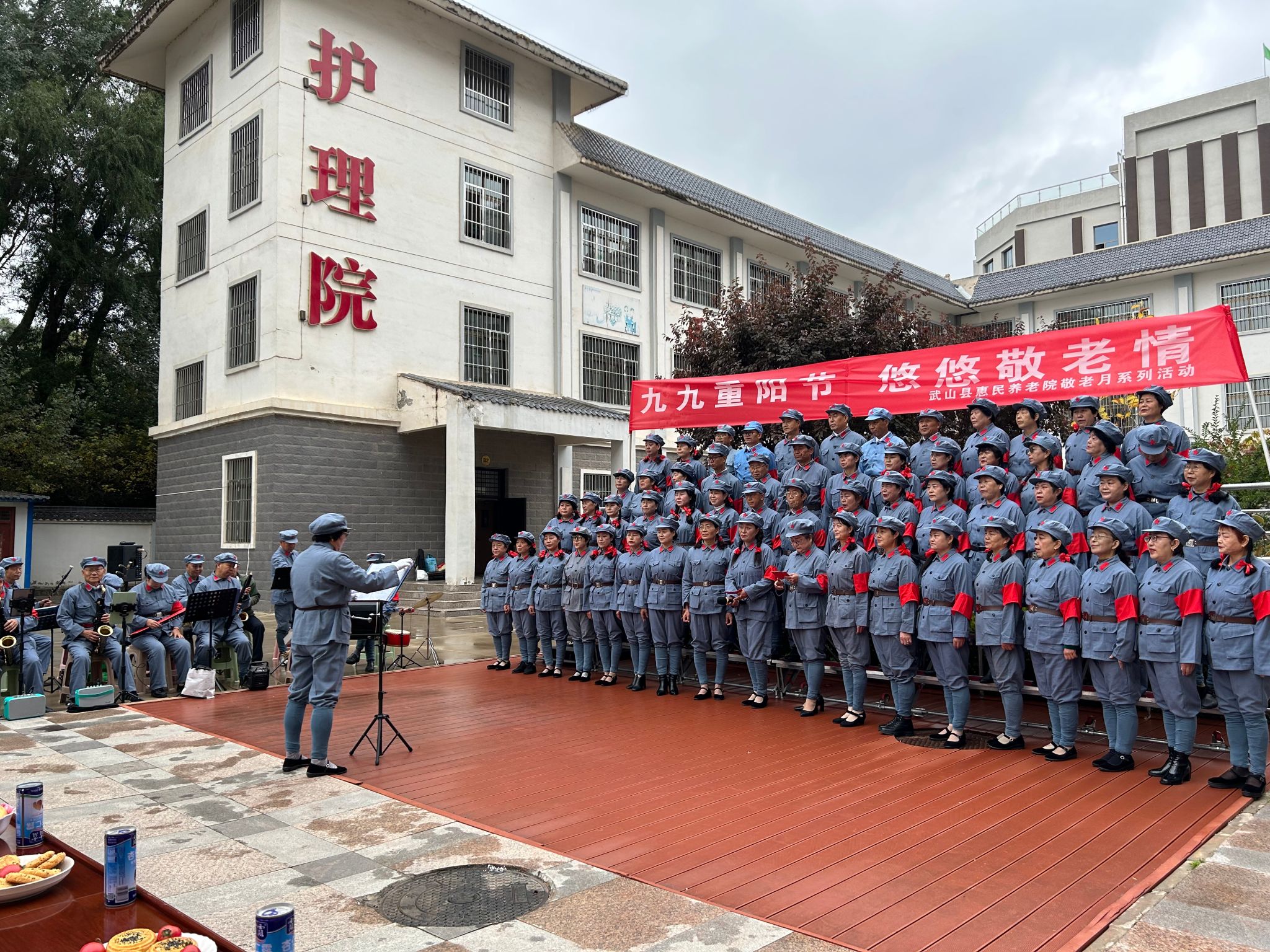 在县惠民养老院,县民政局干部职工、渭水之声艺术团和志愿者联合为养老院的老年人献上了丰富的文艺节目,精彩的表演,给老人们带来了欢乐,迎来了阵阵掌声和欢呼声,让他们度过了一个温馨、快乐的重阳节。