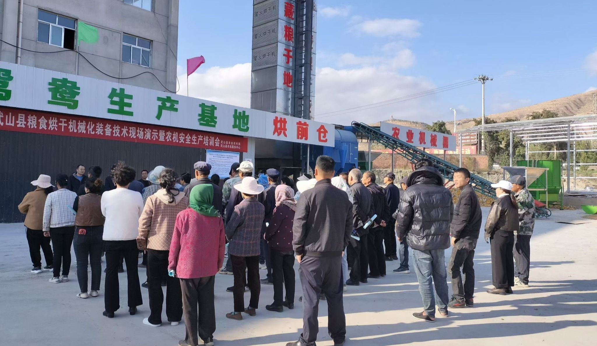 10月24日,武山县农业农村局在武山县鸳鸯镇农业产业园举办了粮食烘干机械化装备技术现场演示暨农机安全生产培训会。县农业农村局业务人员、鸳鸯镇干部代表及全县农机合作社和种粮大户代表100人参加了演示观摩活动。