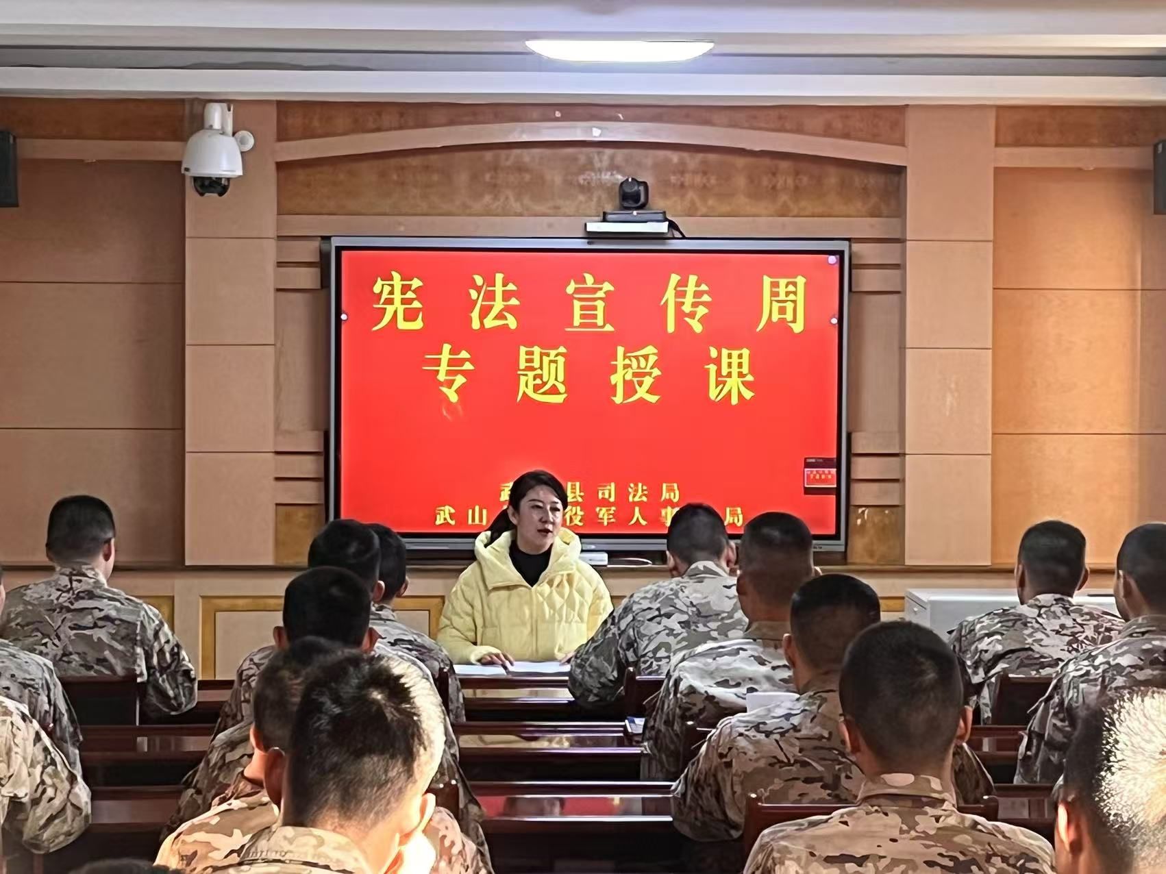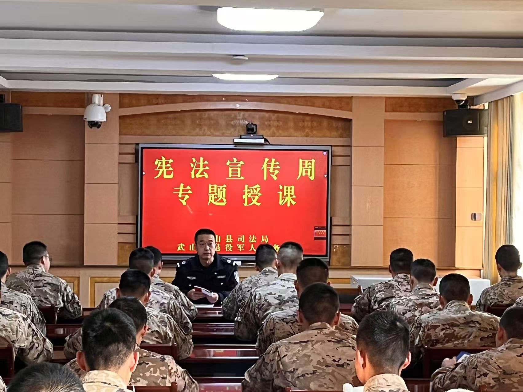 为切实帮助驻县部队官兵了解掌握政策法规,增进法律意识,在全国第十一个国家宪法日来临之际,12月4日,县退役军人事务局联合县司法局到驻县某部队开展“进军营 讲宪法 宣政策”活动。