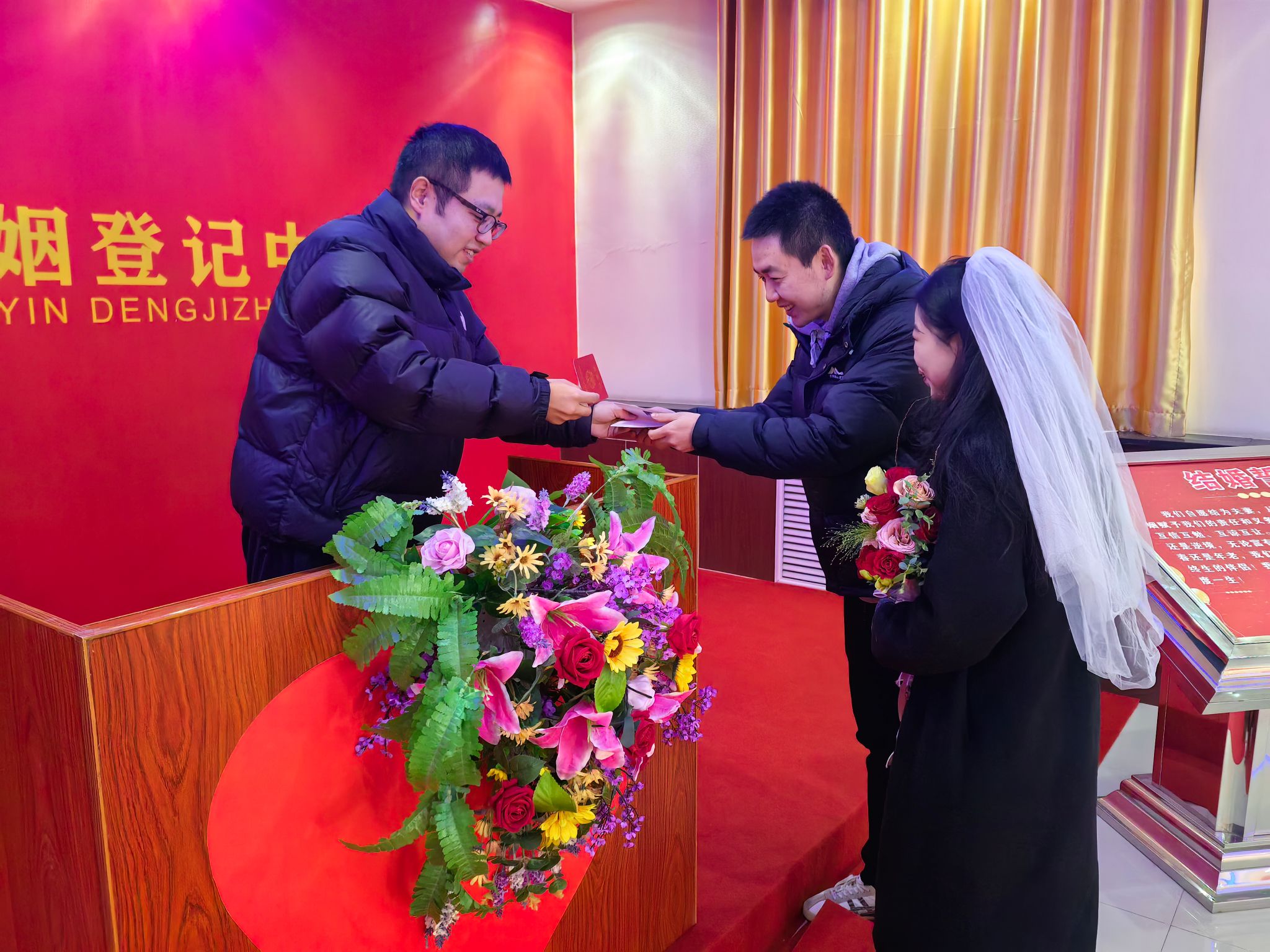 据统计,元旦当天,共有26对新人登记结婚。