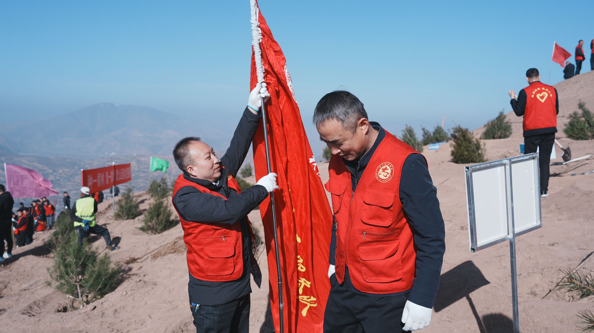 上午9时许,参与植树的人员准时抵达植树地点。现场人头攒动,大家热情高涨,干劲十足。在专业人员简要讲解植树的方法和注意事项后,全体人员迅速行动起来,两人一组,分工协作,密切配合,有条不紊地开展植树活动。挥锹铲土、扶苗填坑、提水浇灌,每一个环节都认真细致、一丝不苟 。