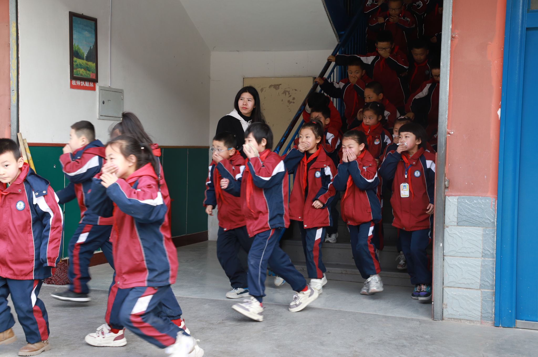 随着一阵急促的警报声响起,消防安全演练正式拉开帷幕。在大队宣传人员张晓的指导下,全校师生迅速进入紧急疏散状态,按照预先规划的逃生路线,用手捂住口鼻,弯腰低姿,沿着楼道一侧安全、快速、有序地向操场安全区域撤离。整个过程紧张而不慌乱,展现了城关小学师生良好的应急反应能力和组织纪律性。